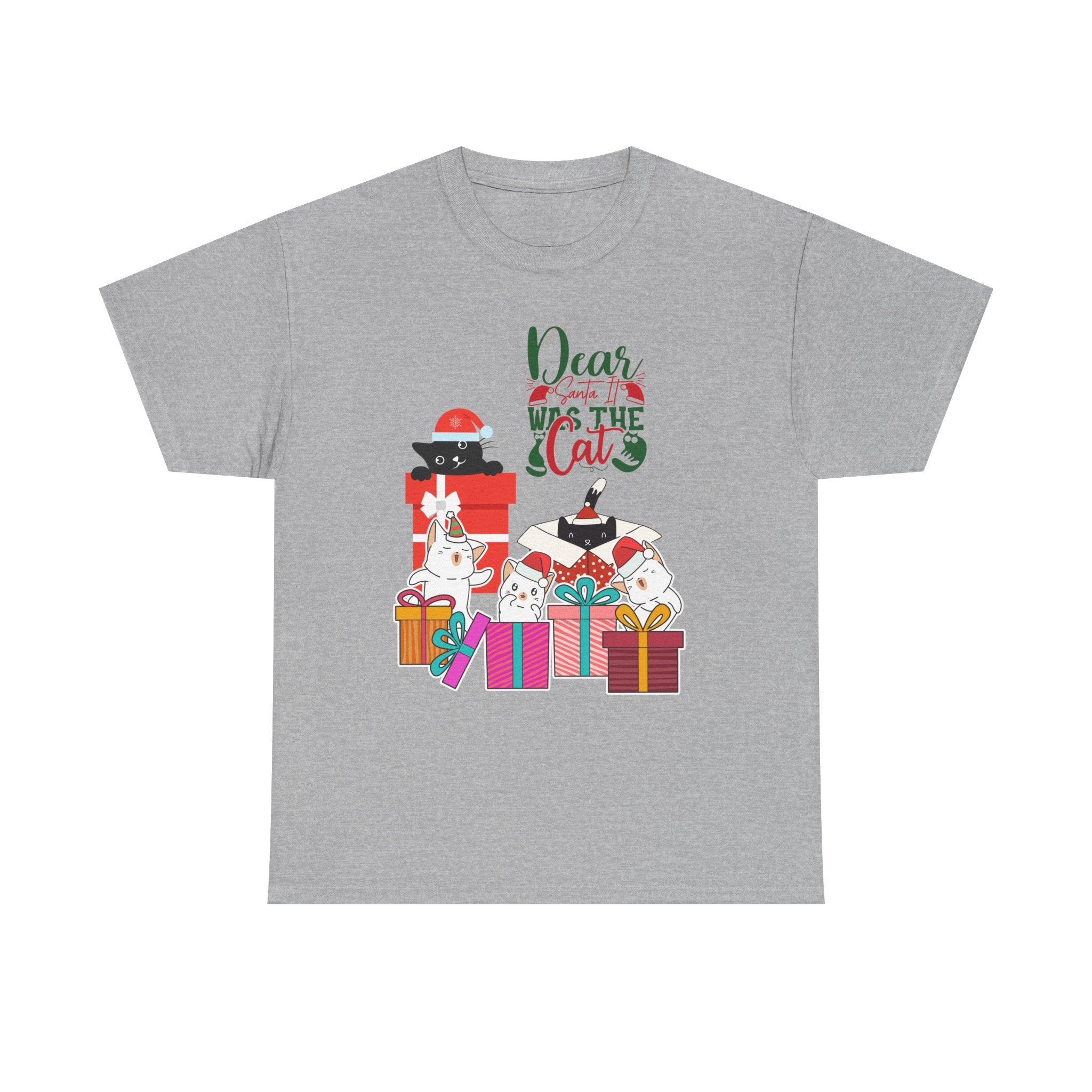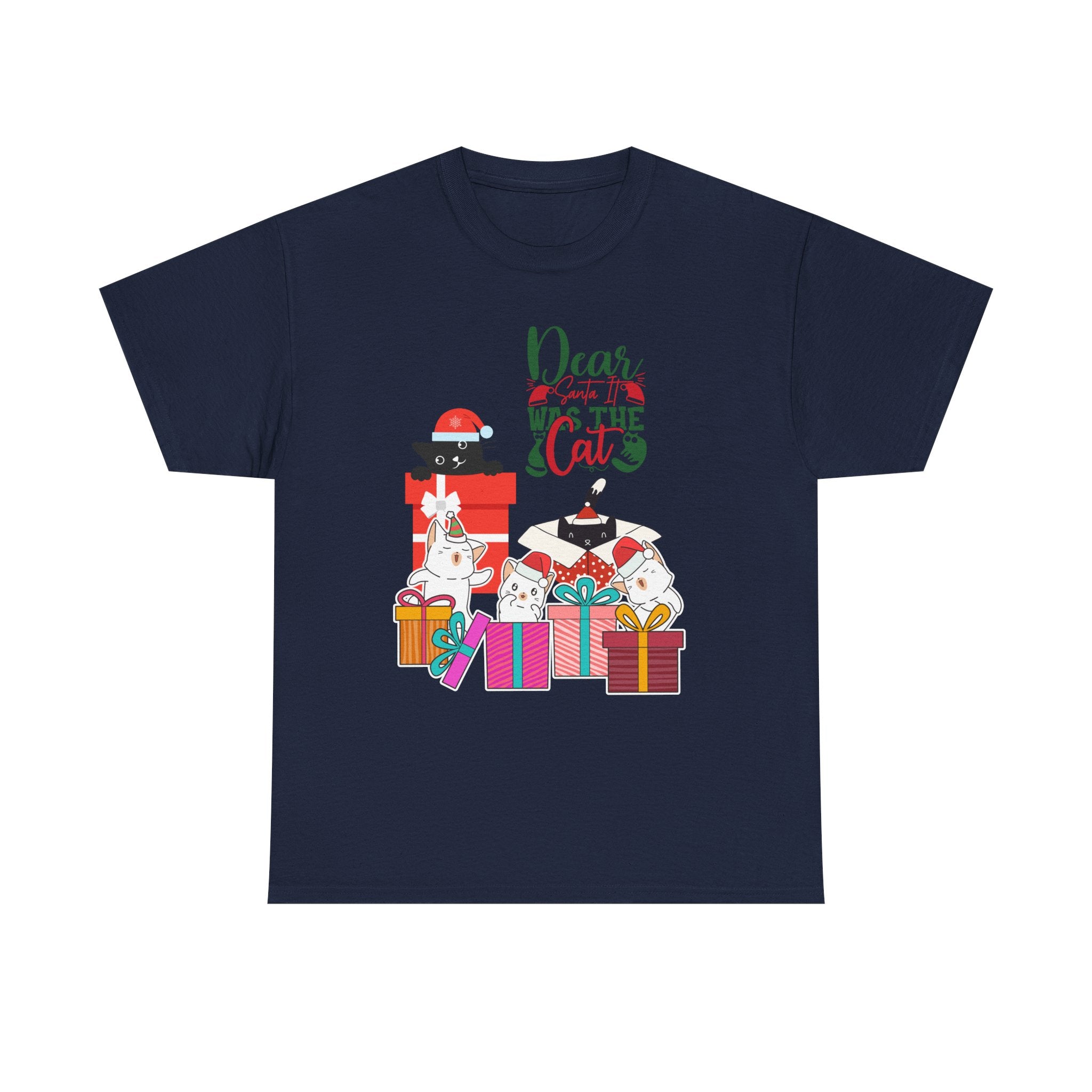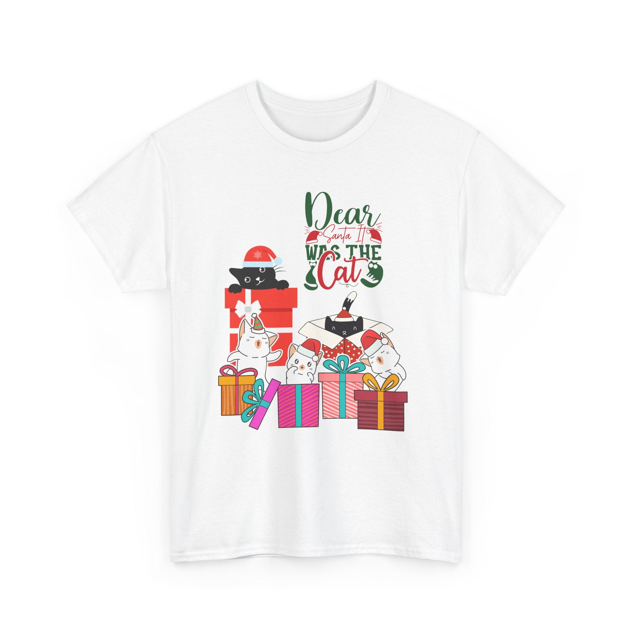 Christmas Cat Gifts T-Shirt — "Dear Santa it Was the Cat" Holiday Tee