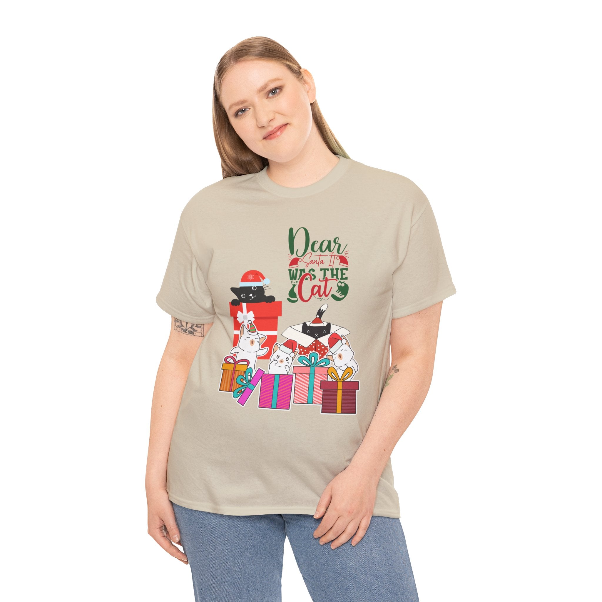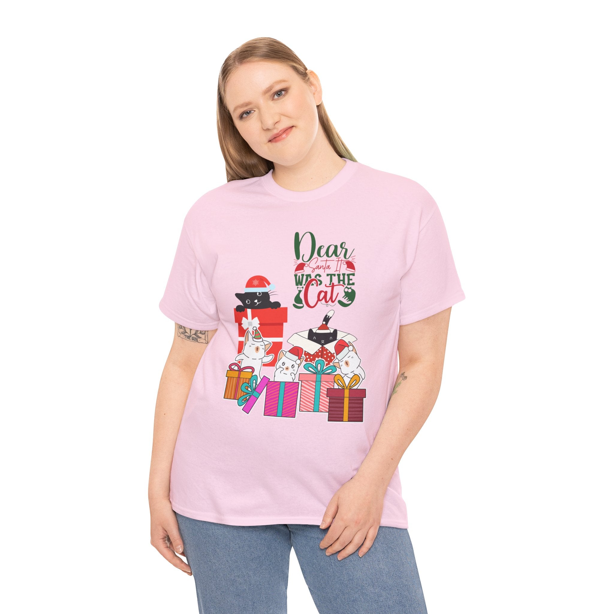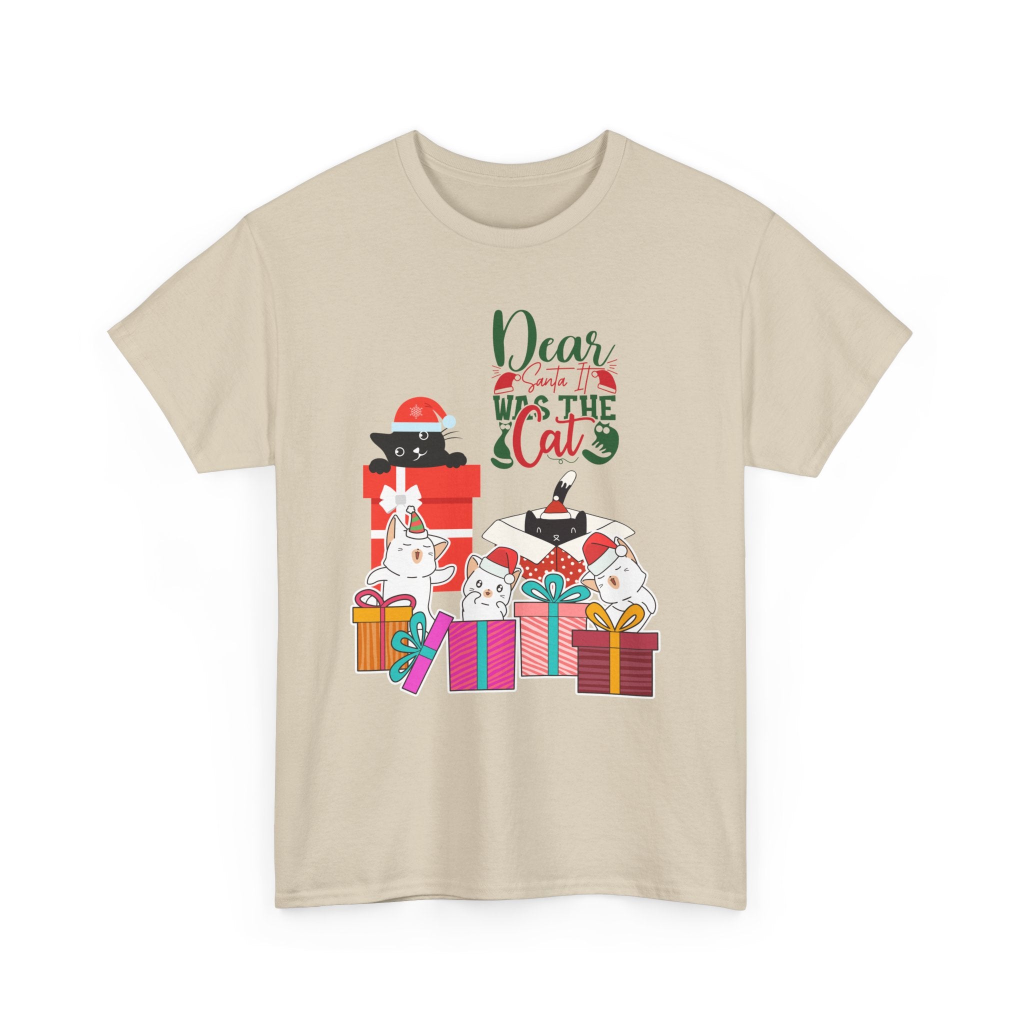 Christmas Cat Gifts T-Shirt — "Dear Santa it Was the Cat" Holiday Tee