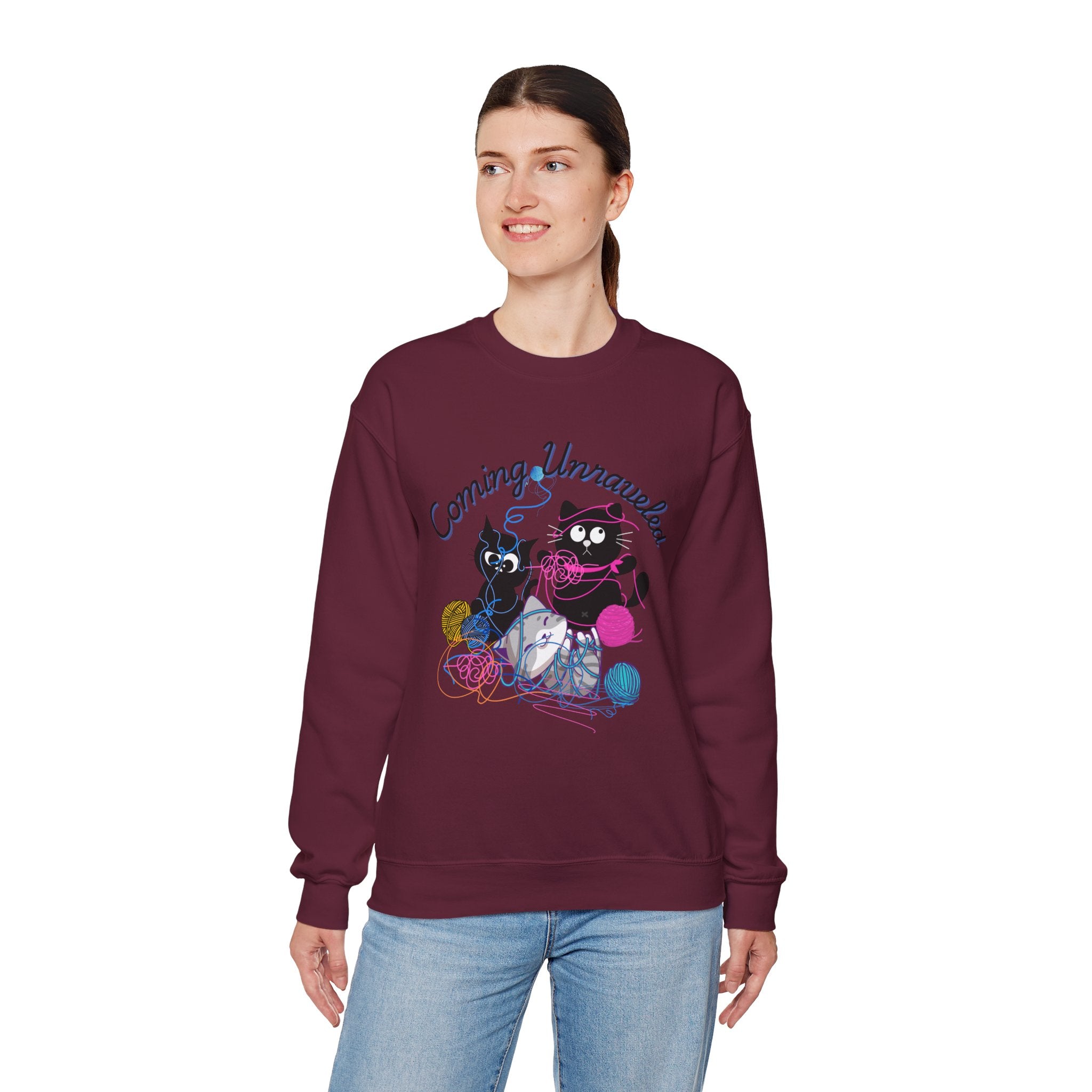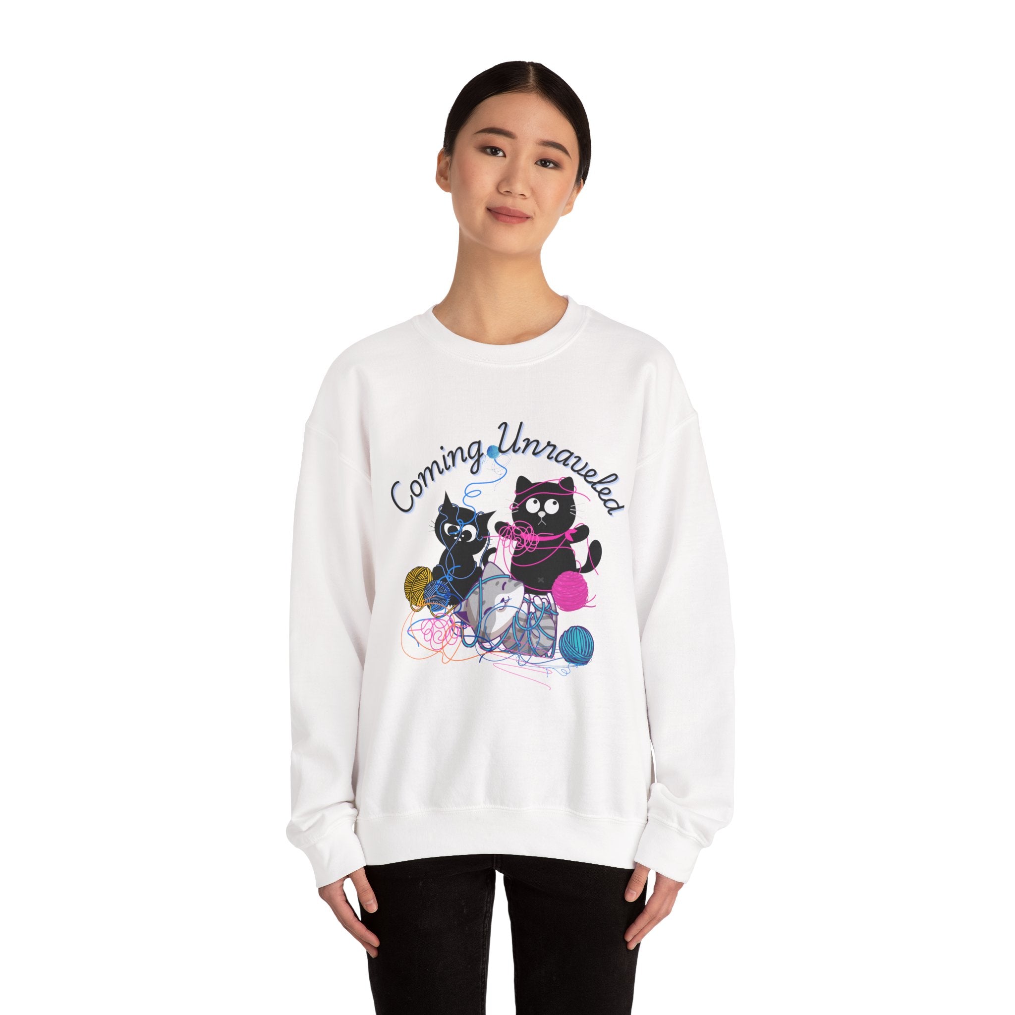 Adorable kittens tangled in unraveling yarn bring charm and humor to this cozy crewneck sweatshirt. Perfect for cat lovers who appreciate whimsical designs, this piece combines comfort with personality. The playful artwork captures the mischievous energy of curious kittens at play, making it an ideal choice for casual wear, lounging, or gifting to fellow feline enthusiasts. Soft and versatile, it pairs effortlessly with your favorite jeans or leggings for a look that's both fun and approachable.
