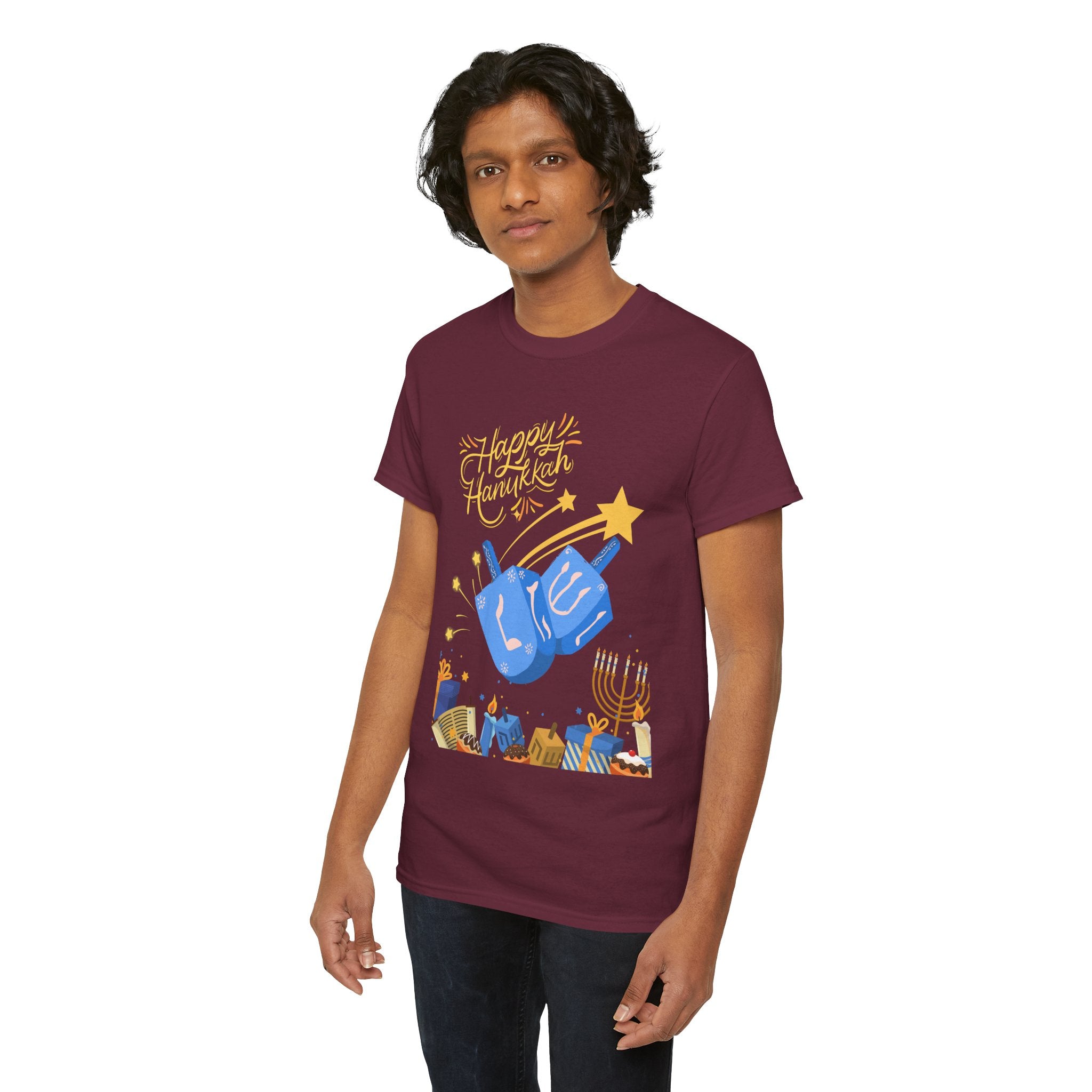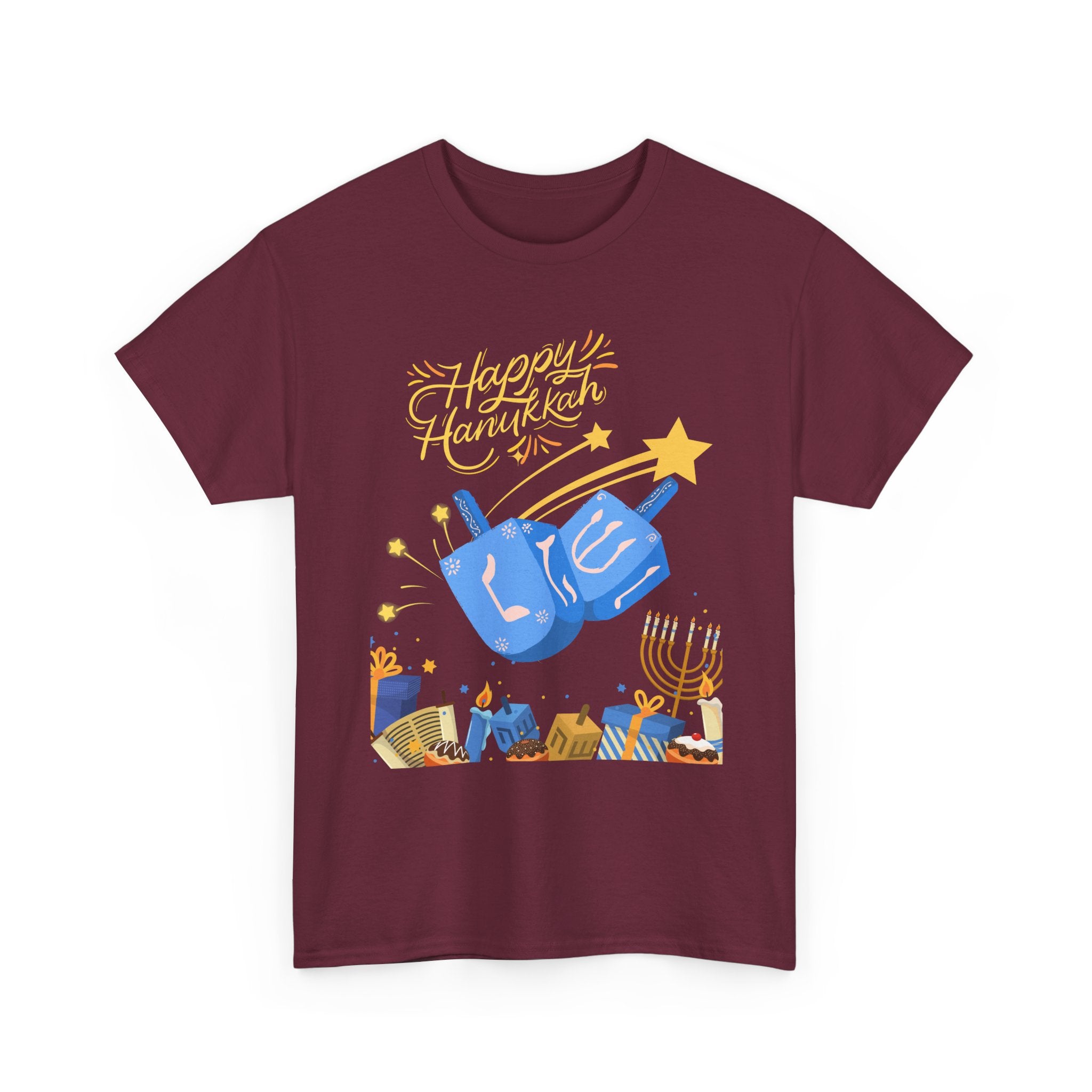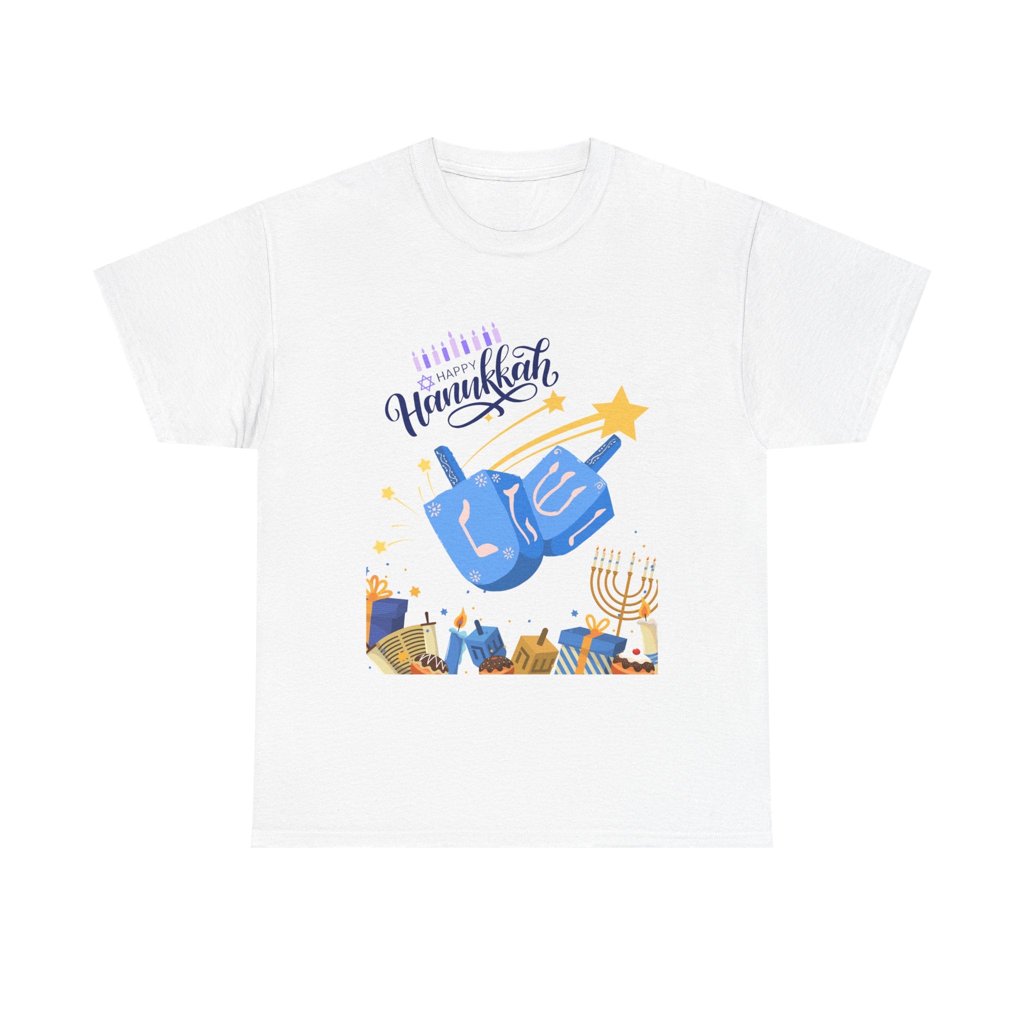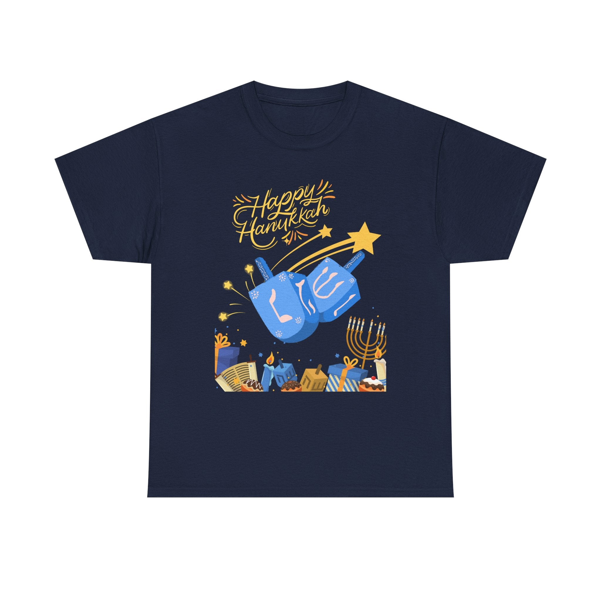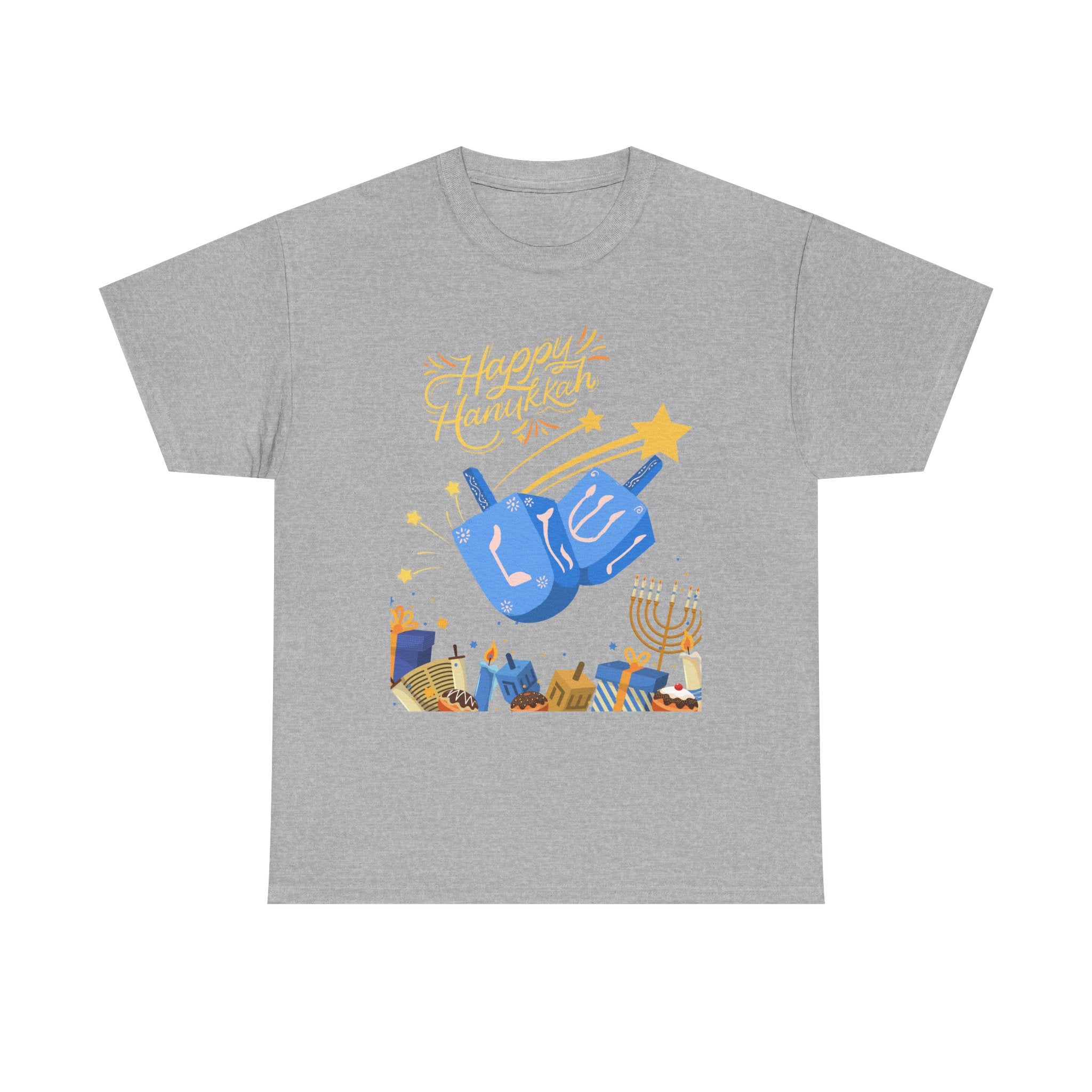 Hanukkah Blue Dreidel & Menorah Holiday Tee 2 design options
