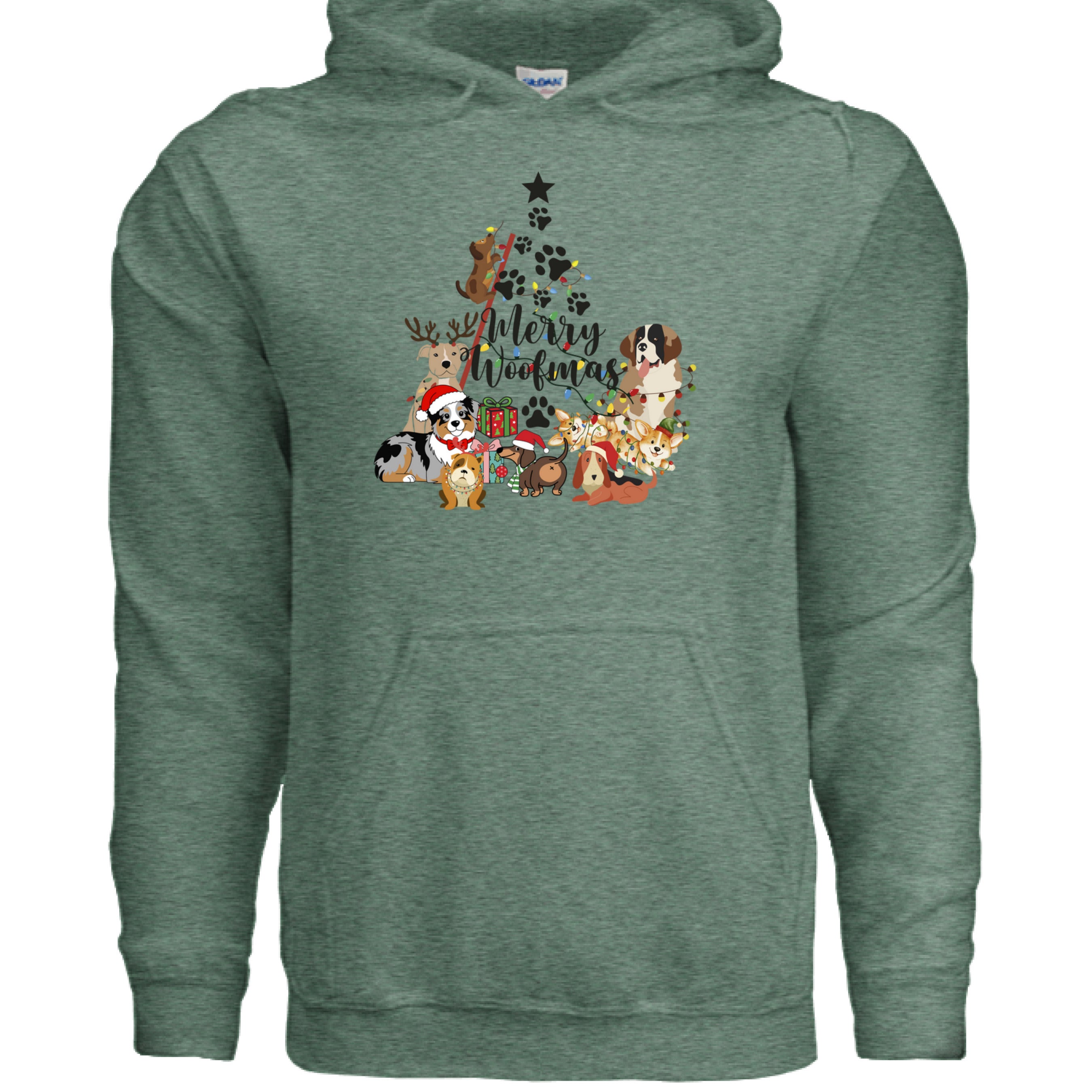 Celebrate the season with your furry best friend in this cozy Merry Woofmas Hooded Holiday Sweatshirt! Perfect for dog lovers who want to spread festive cheer, this playful design combines holiday spirit with pup-approved charm. The soft, comfortable hoodie is ideal for chilly winter days, casual outings, or lounging at home. Whether you're matching with your four-legged companion or just showing off your love for all things dogs and Christmas, this sweatshirt brings warmth, style, and a tail-wagging dose of holiday fun to your wardrobe.