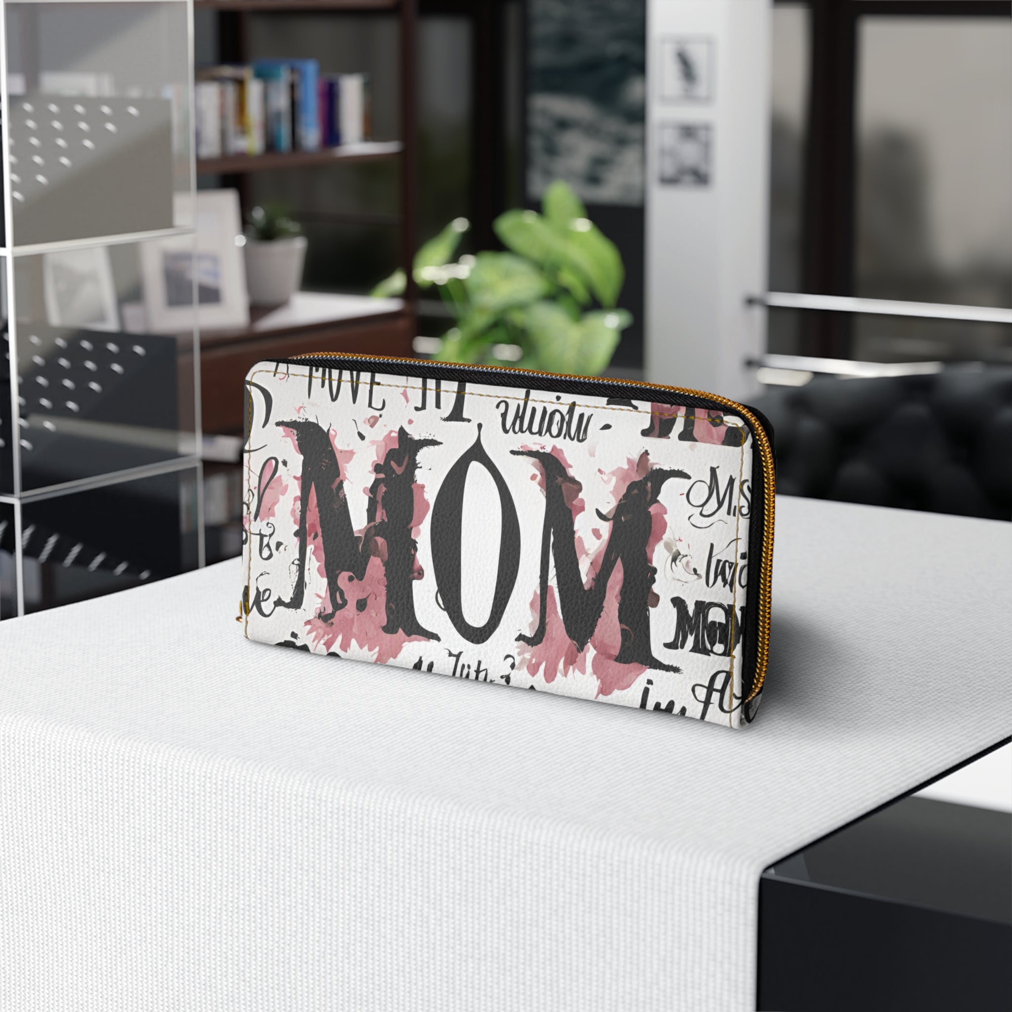 Mom Script Zip Wallet — Floral Typography Chic Wallet