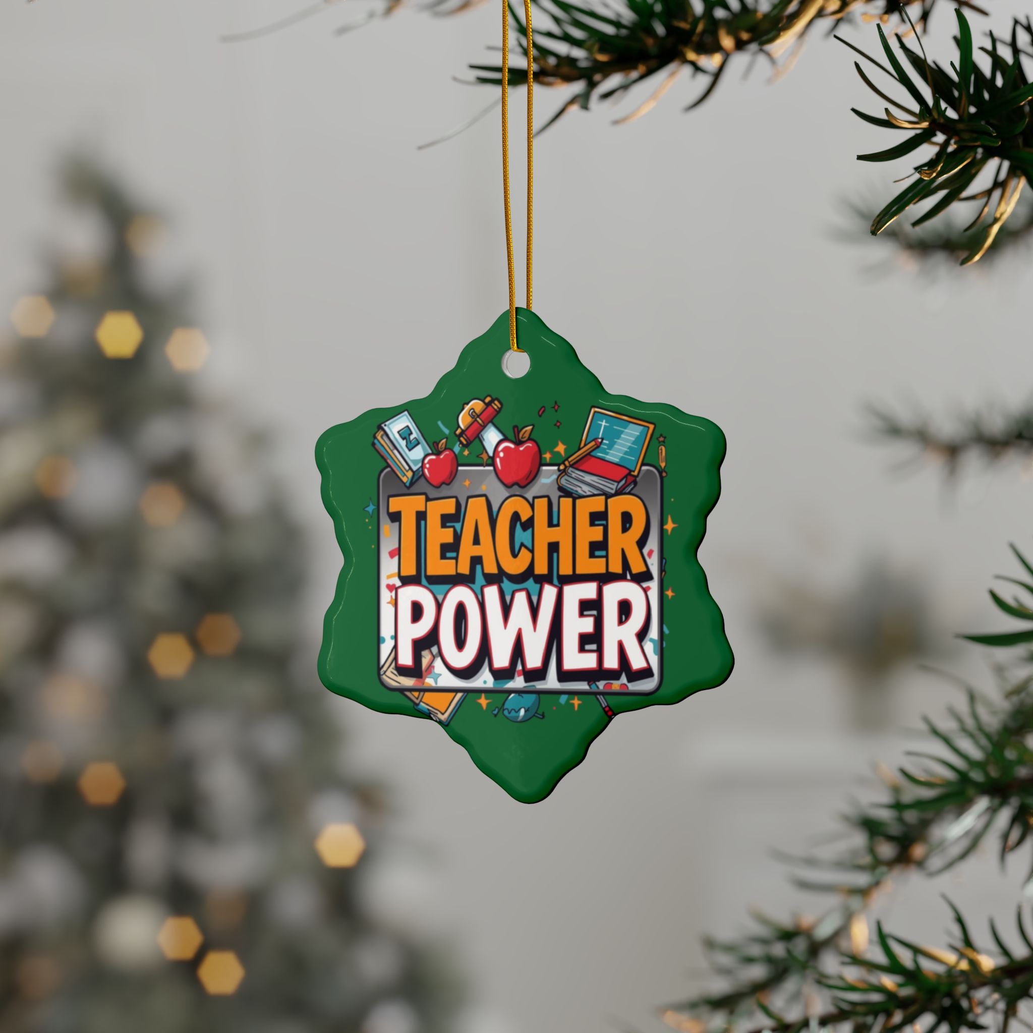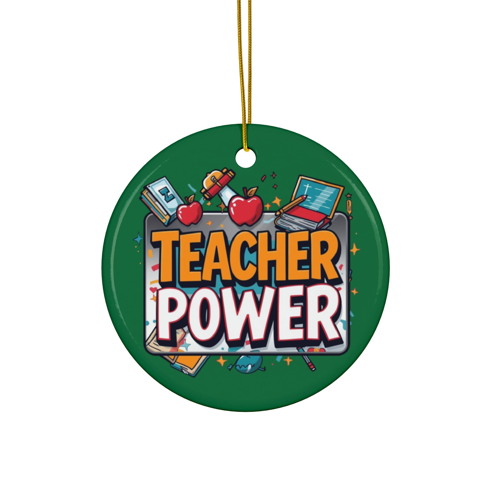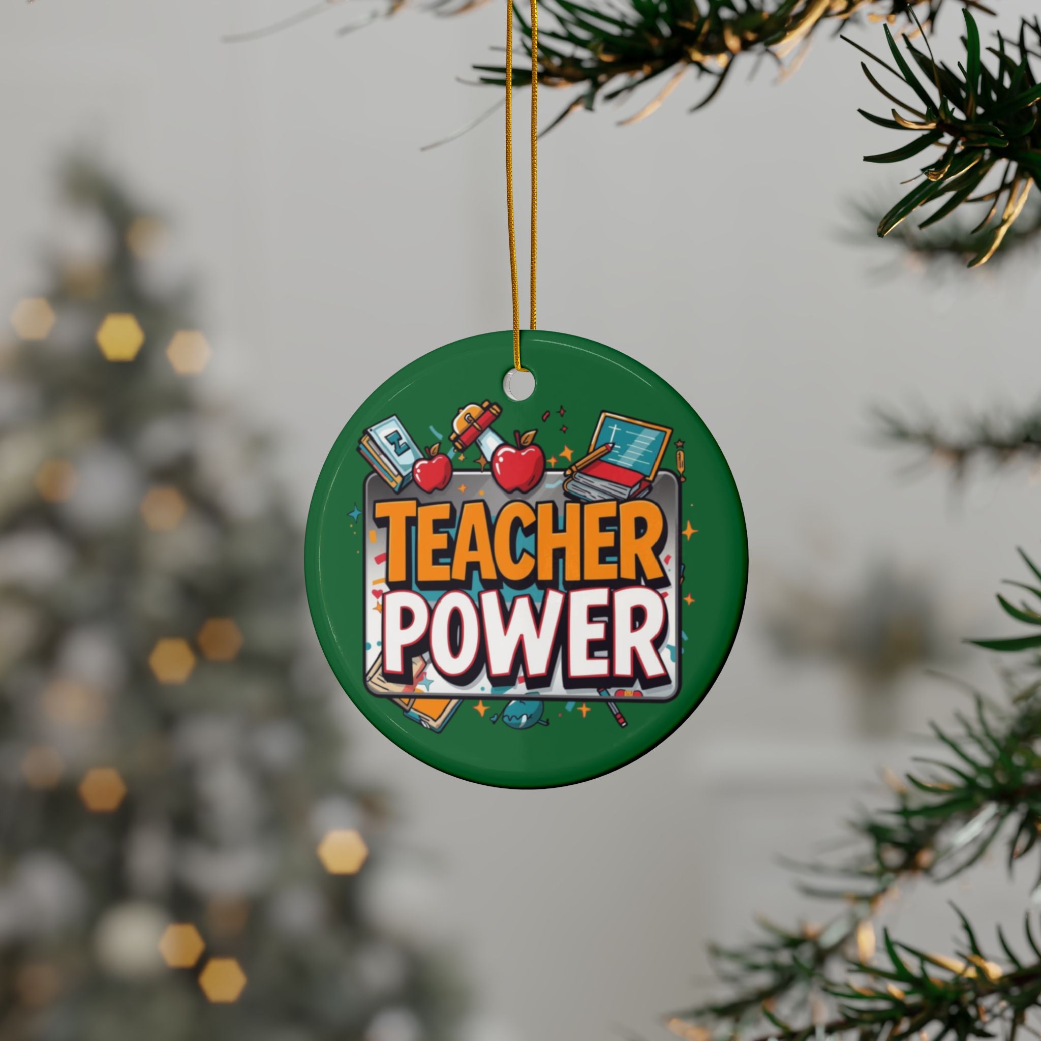 Teacher Power Ceramic Ornament — Double-Sided Teacher Appreciation Holiday Gift