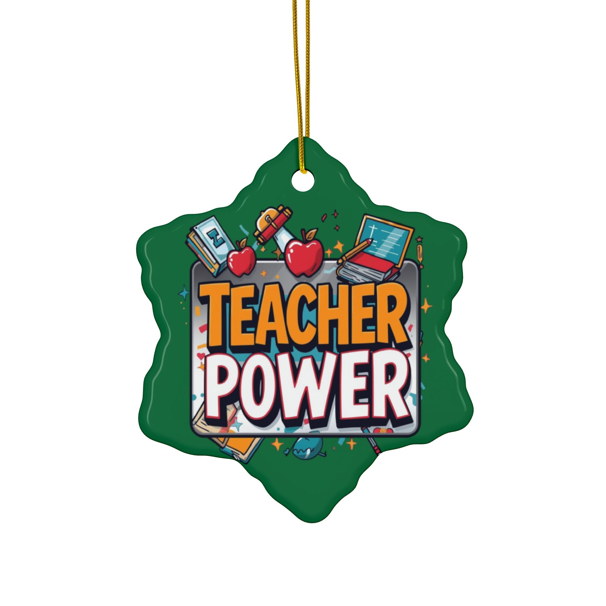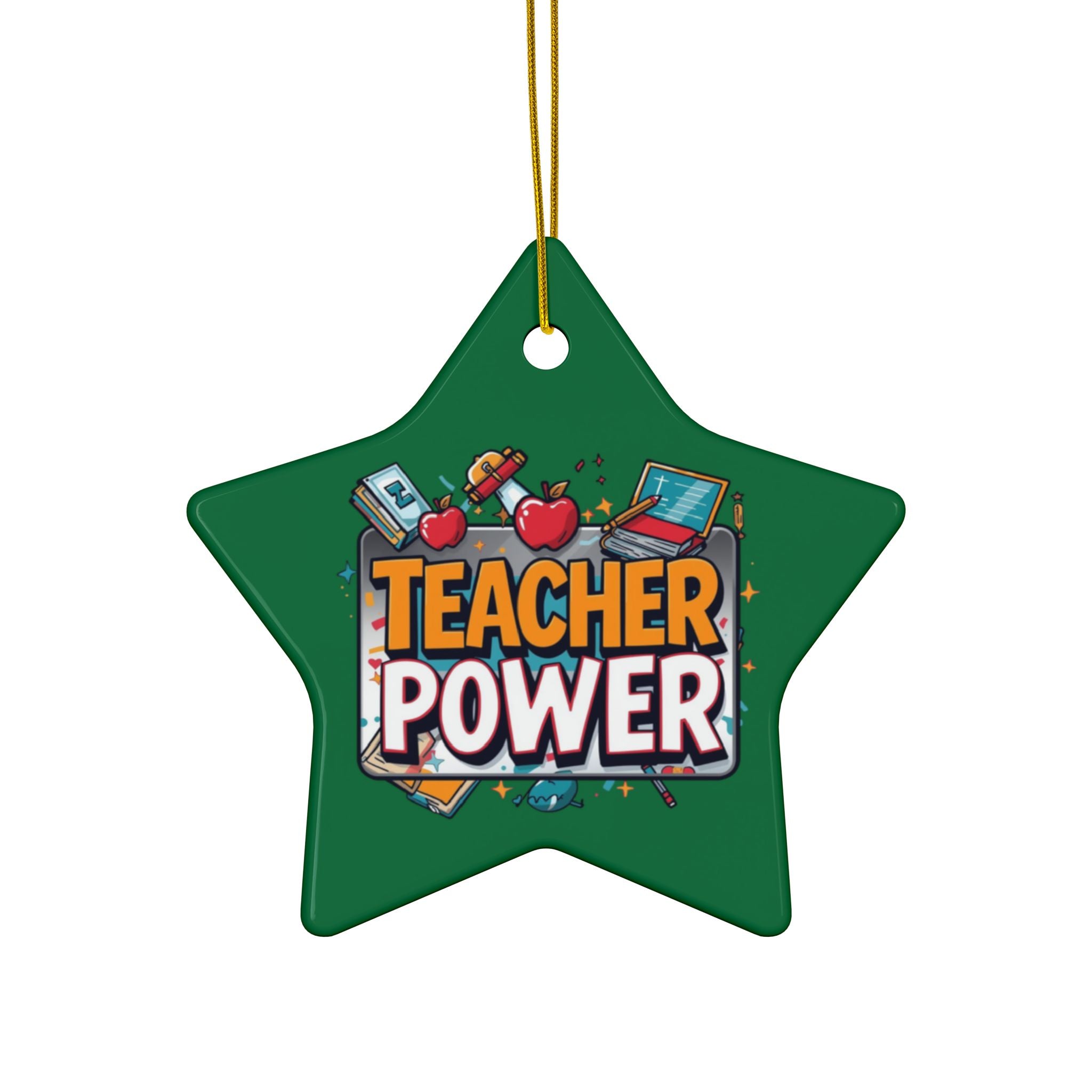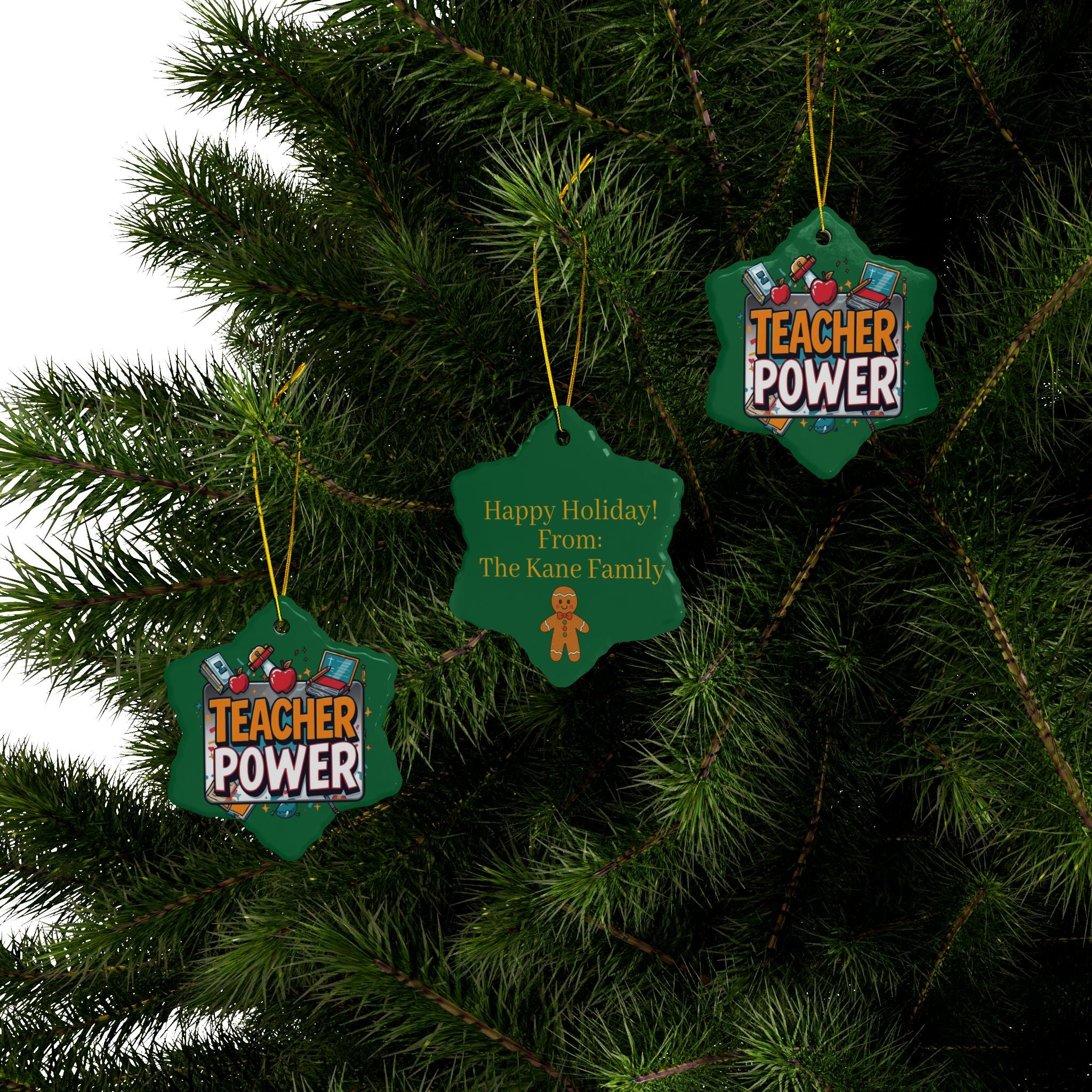 Teacher Power Ceramic Ornament — Double-Sided Teacher Appreciation Holiday Gift