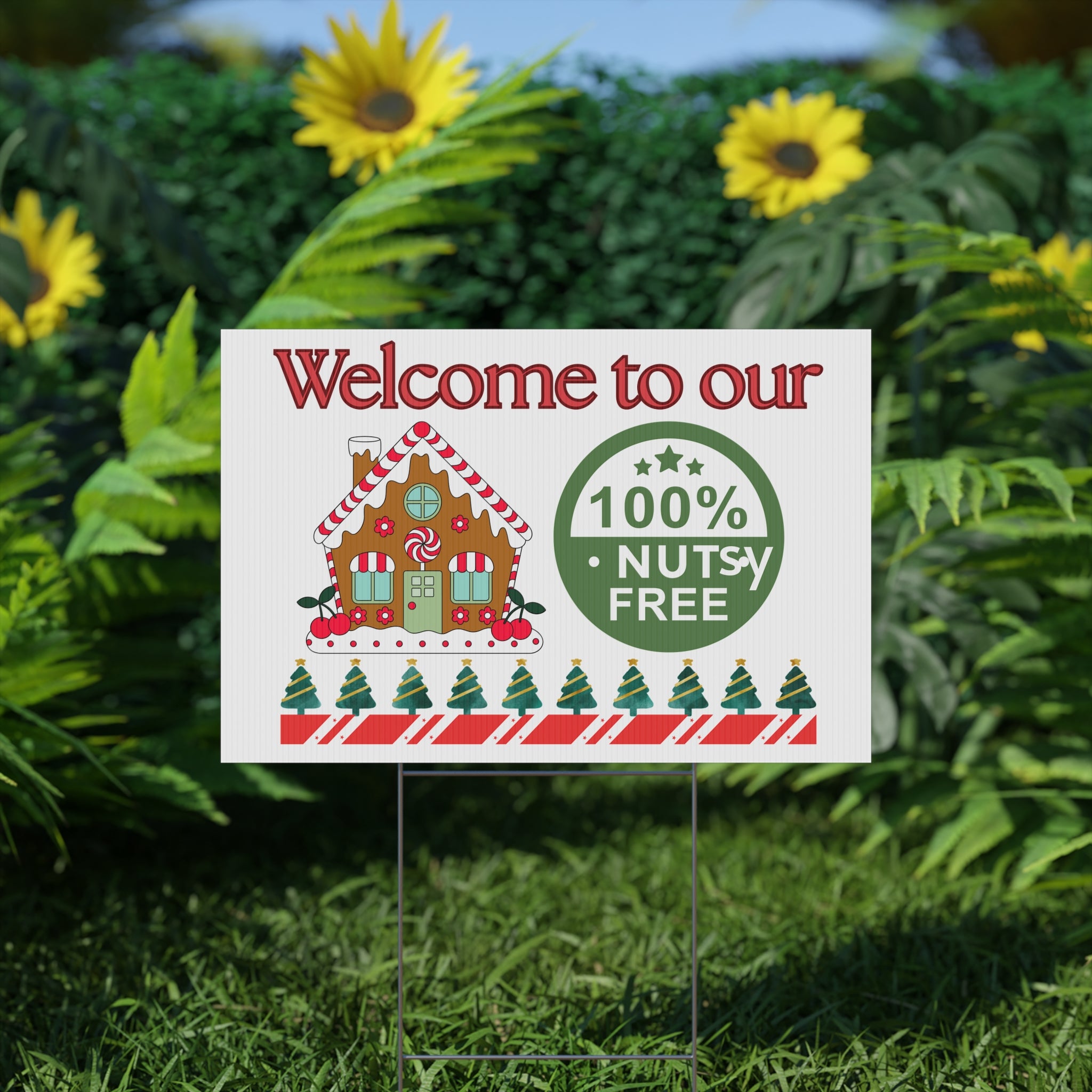 “Welcome to our Home 100% Nutsy Free” Holiday Yard Sign