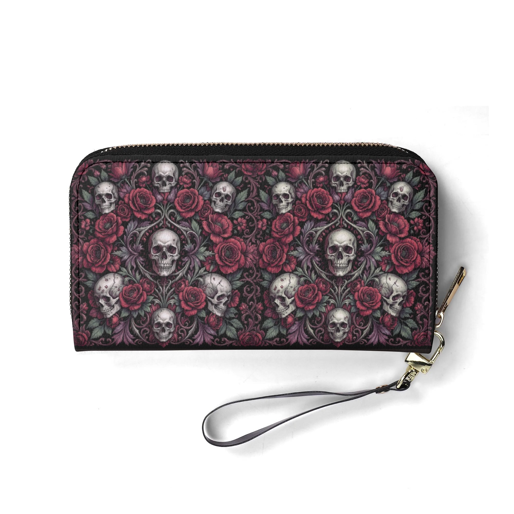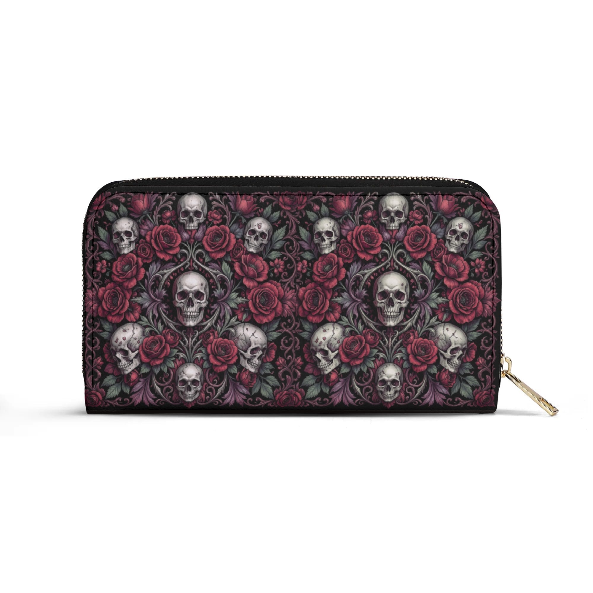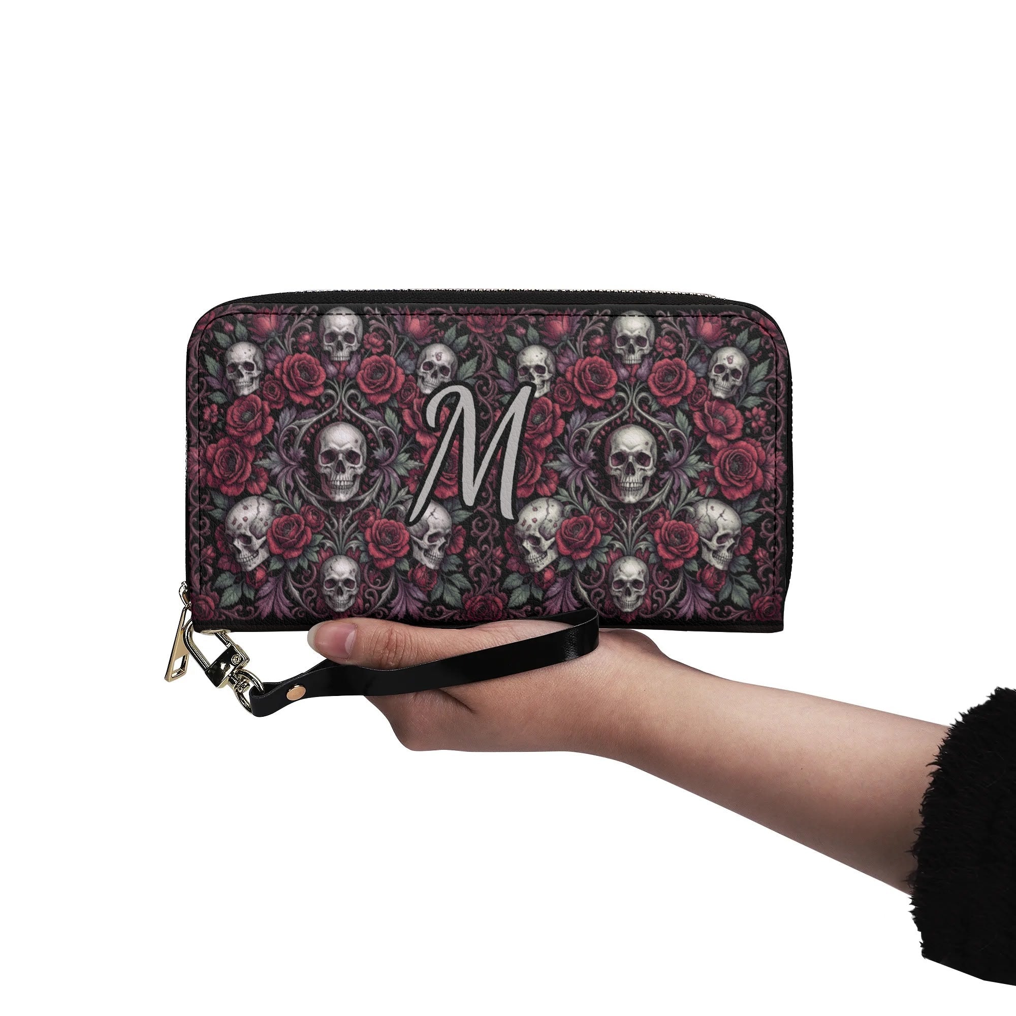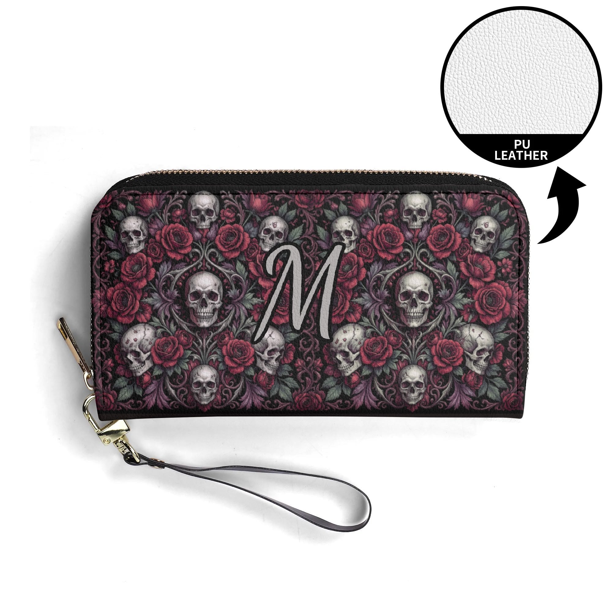Discover the perfect blend of elegance and functionality with this Gothic Skull & Floral Initial PU Leather Wallet. Designed for the modern sophisticate, it features a premium PU leather construction that exudes luxury and durability. The wallet's large and elongated design offers ample space to comfortably store your phone, cash, and cards.