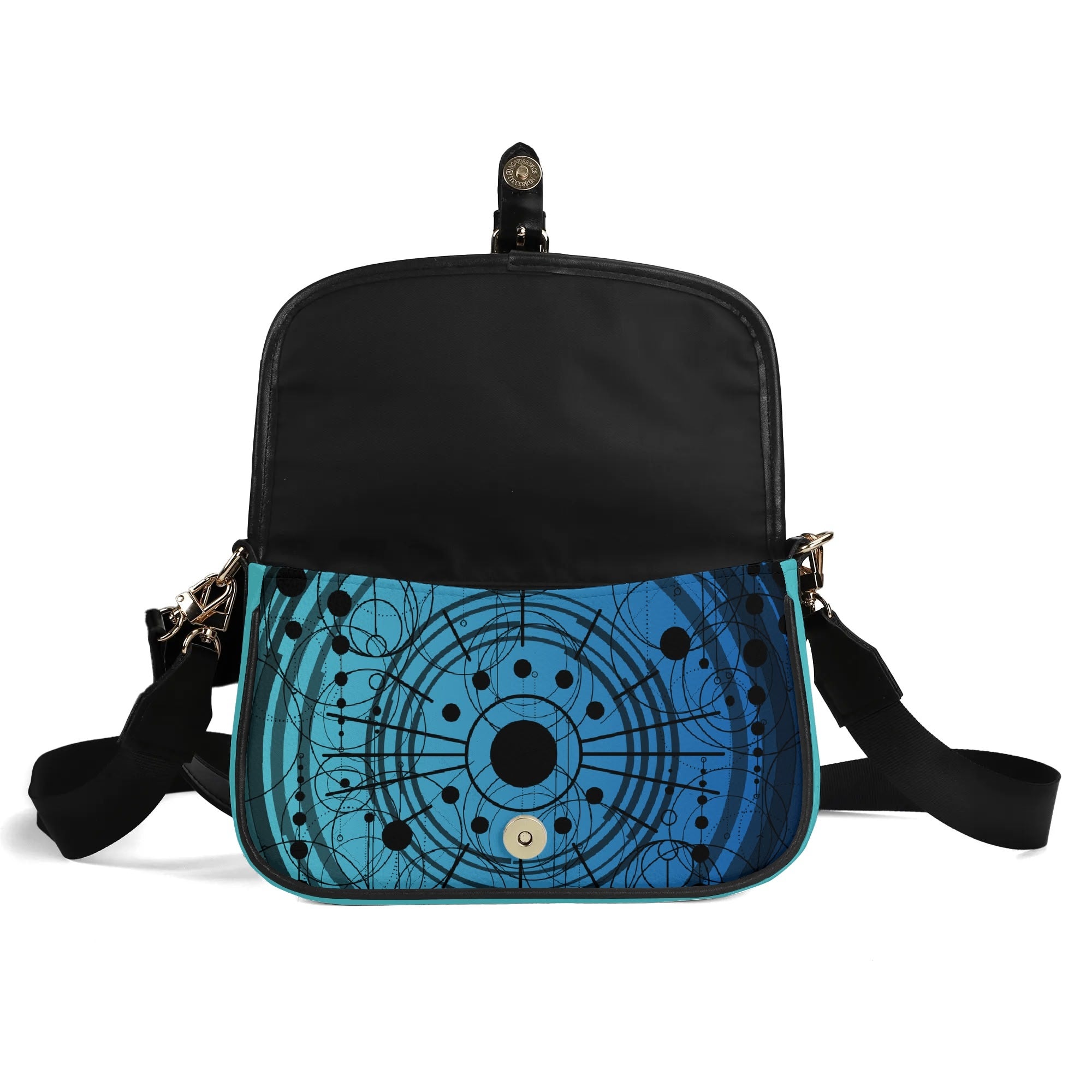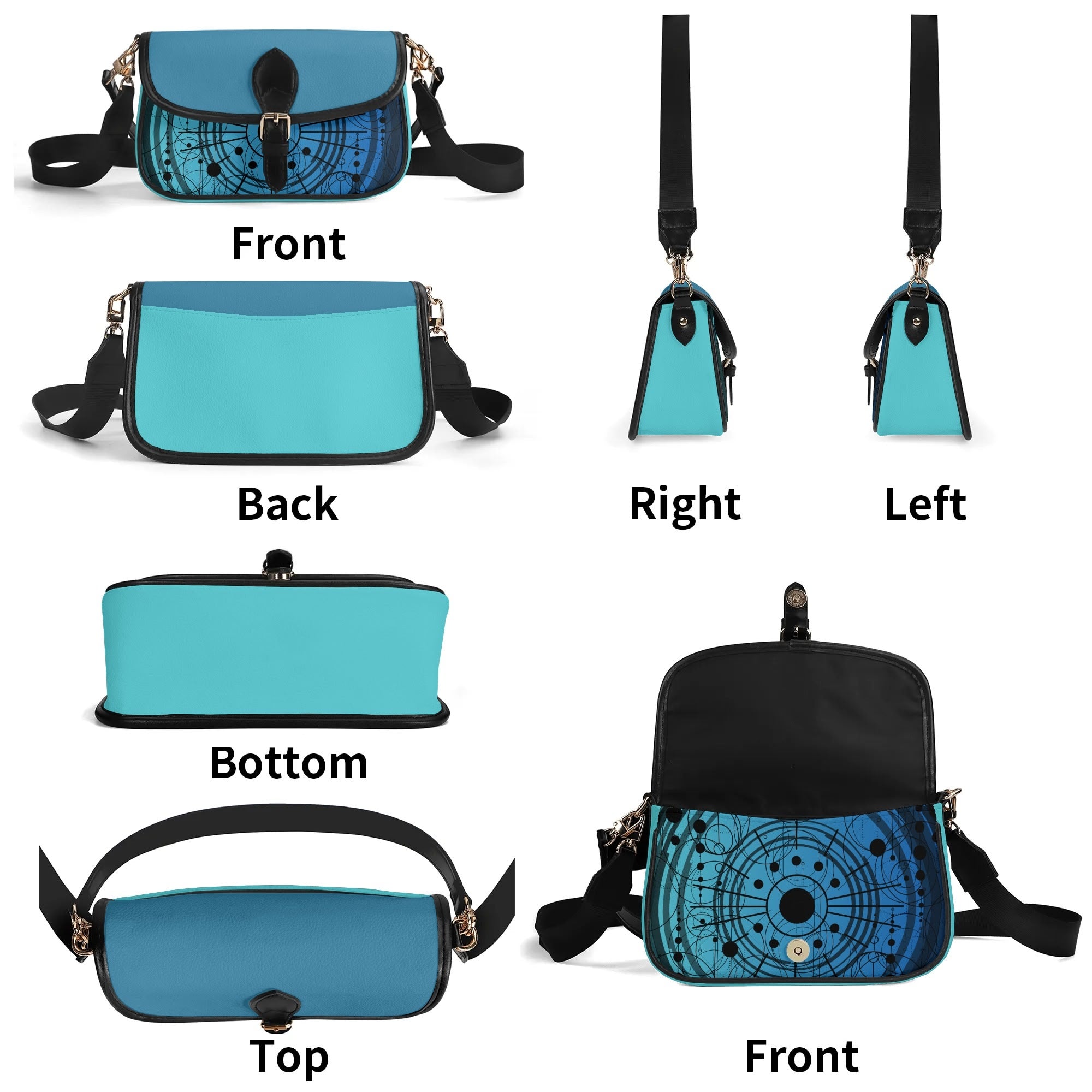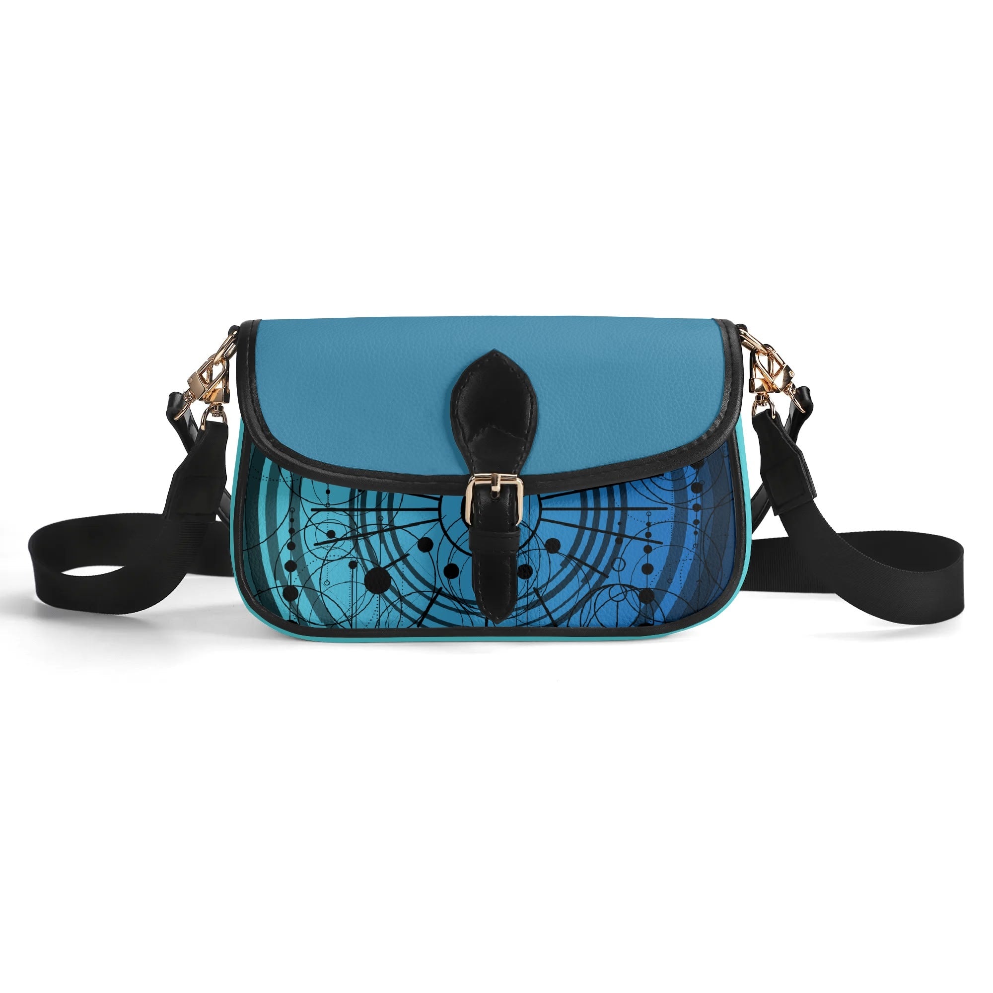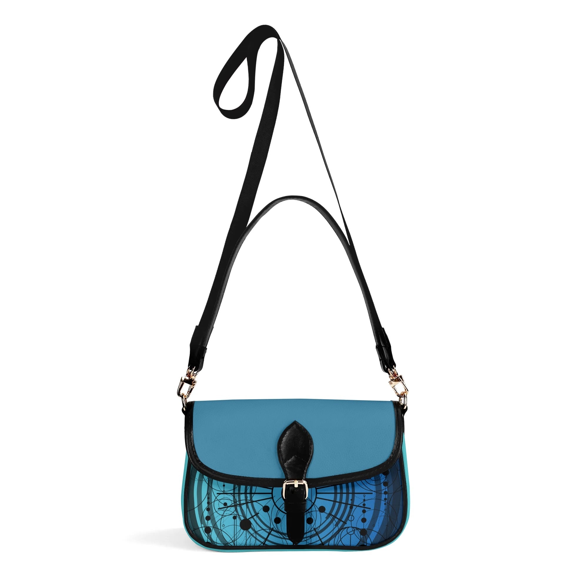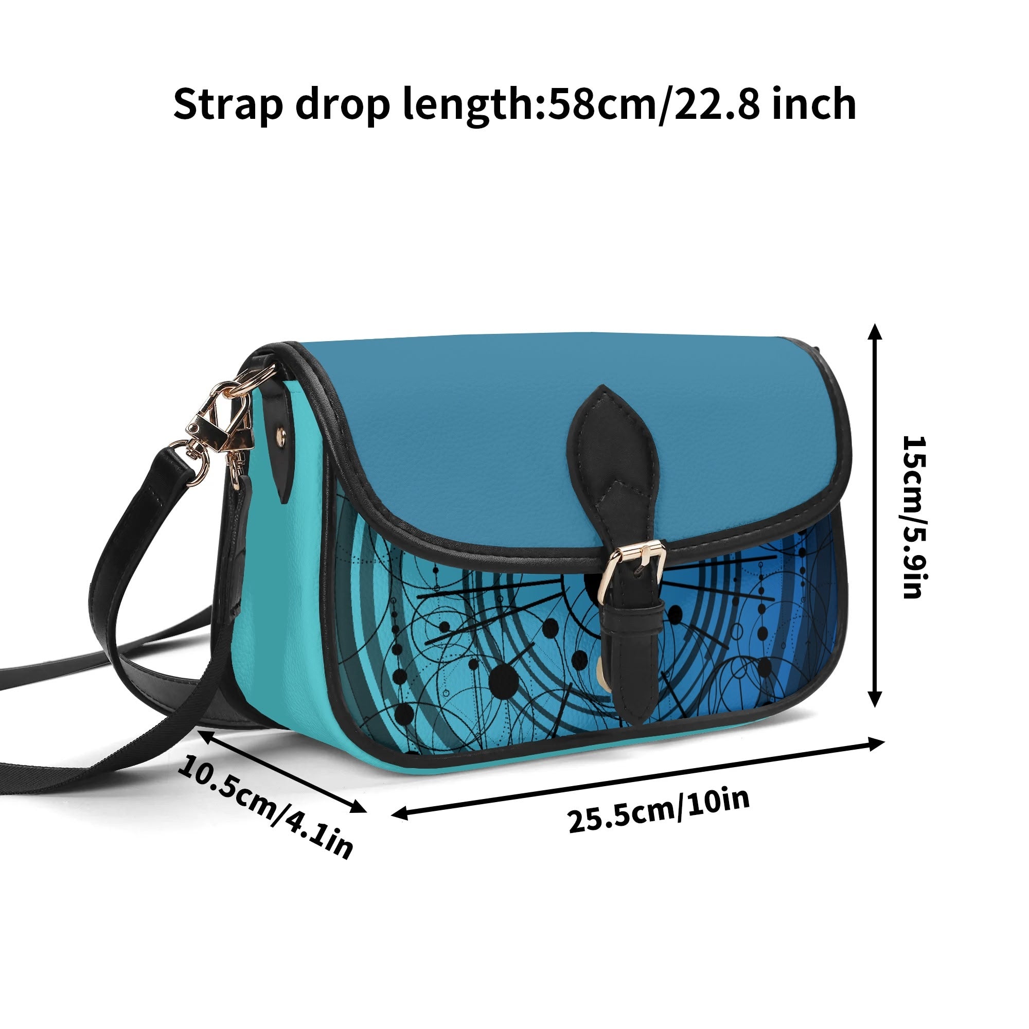 With its square base and flap closure at the front ring, this bag provides added stability and security, keeping your essentials within easy reach. The blue pattern design adds a unique and stylish element, making it a standout piece in your wardrobe.