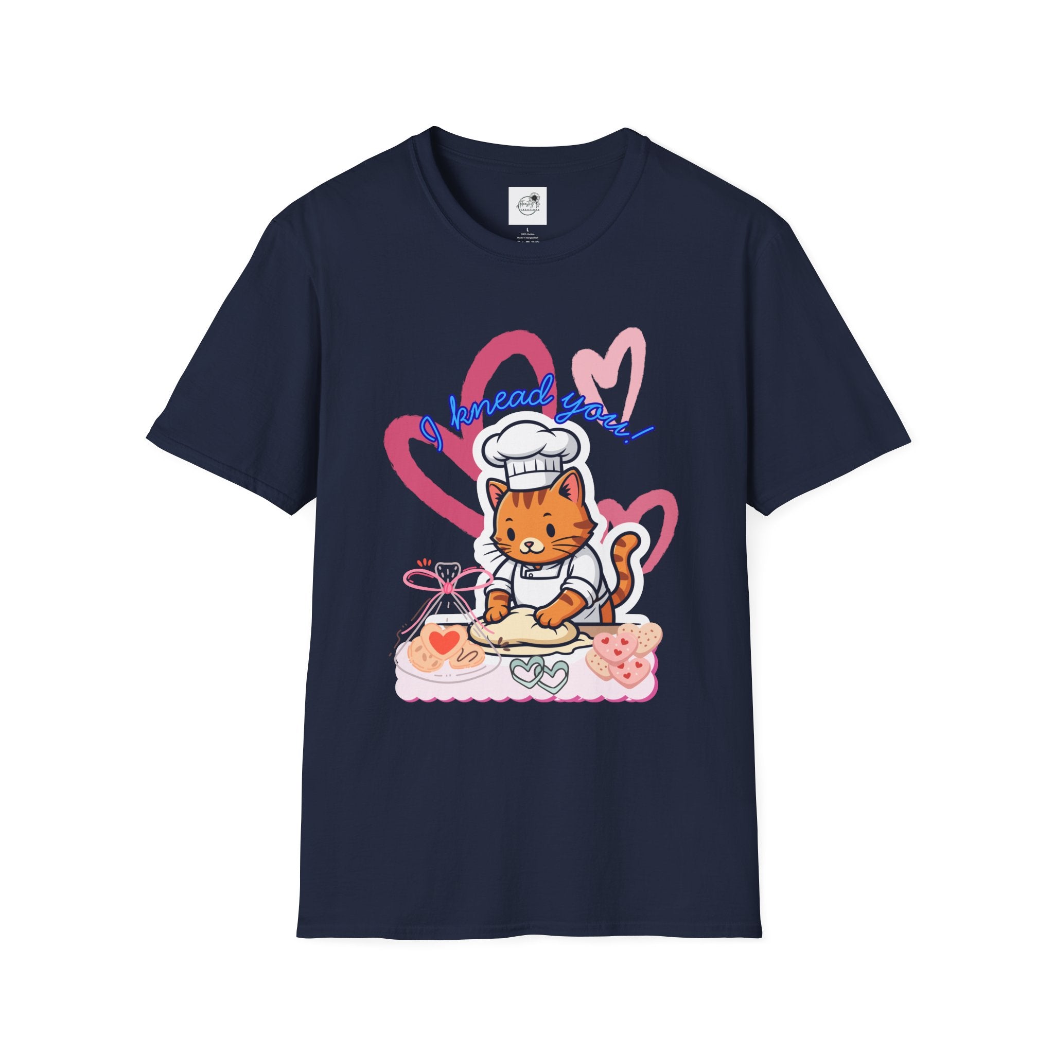 Meet the purr-fect tee for cat lovers and kitchen enthusiasts alike. This unisex softstyle shirt features an adorable chef cat caught mid-knead, bringing whimsy and warmth to your wardrobe. The clever design plays on the double meaning of "knead"—both baking and feline affection—making it a conversation starter for anyone who appreciates furry friends and culinary humor. Soft, comfortable, and endlessly charming, it's the ideal gift for bakers, cat parents, or anyone who loves a good pun with personality.