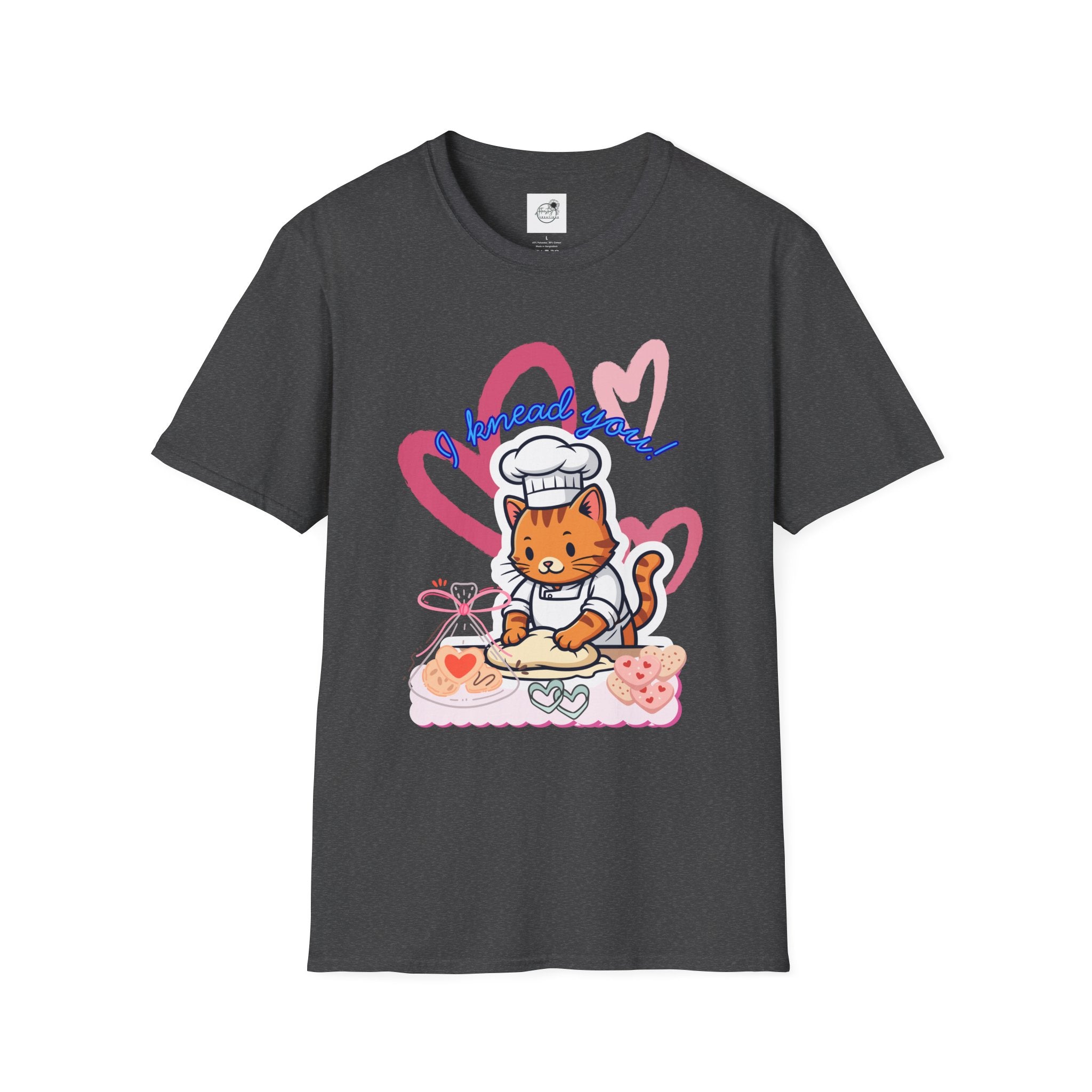 I Knead You—a playful twist on a timeless phrase, perfect for bread lovers, bakers, and anyone who appreciates a good pun. This unisex softstyle tee combines comfort with humor, featuring a soft-touch fabric that feels as good as it looks. Whether you're kneading a laugh or just love all things carbs, this shirt lets your personality rise to the occasion. Ideal for casual wear, gift-giving, or showing off your baking passion.