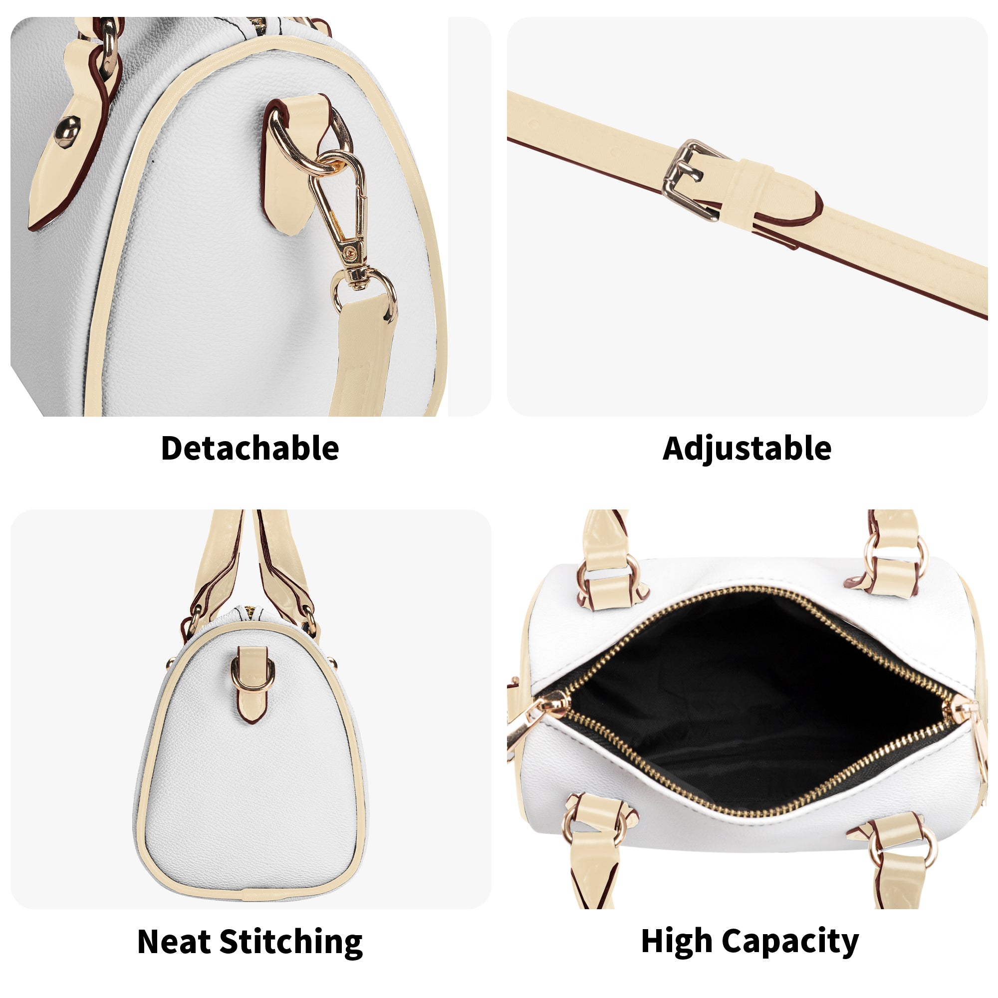 The Moon Beam bag is available in classic beige and black, making it a versatile choice for various styles and occasions. Its compact size of 20. 5cm x 12. 5cm x 16 cm (8. 3in x 4.92in x 6. 3in) ensures it's easy to carry while still holding all your daily necessities. The detachable shoulder strap allows for flexible carrying options, whether you're going to work, shopping, or traveling.