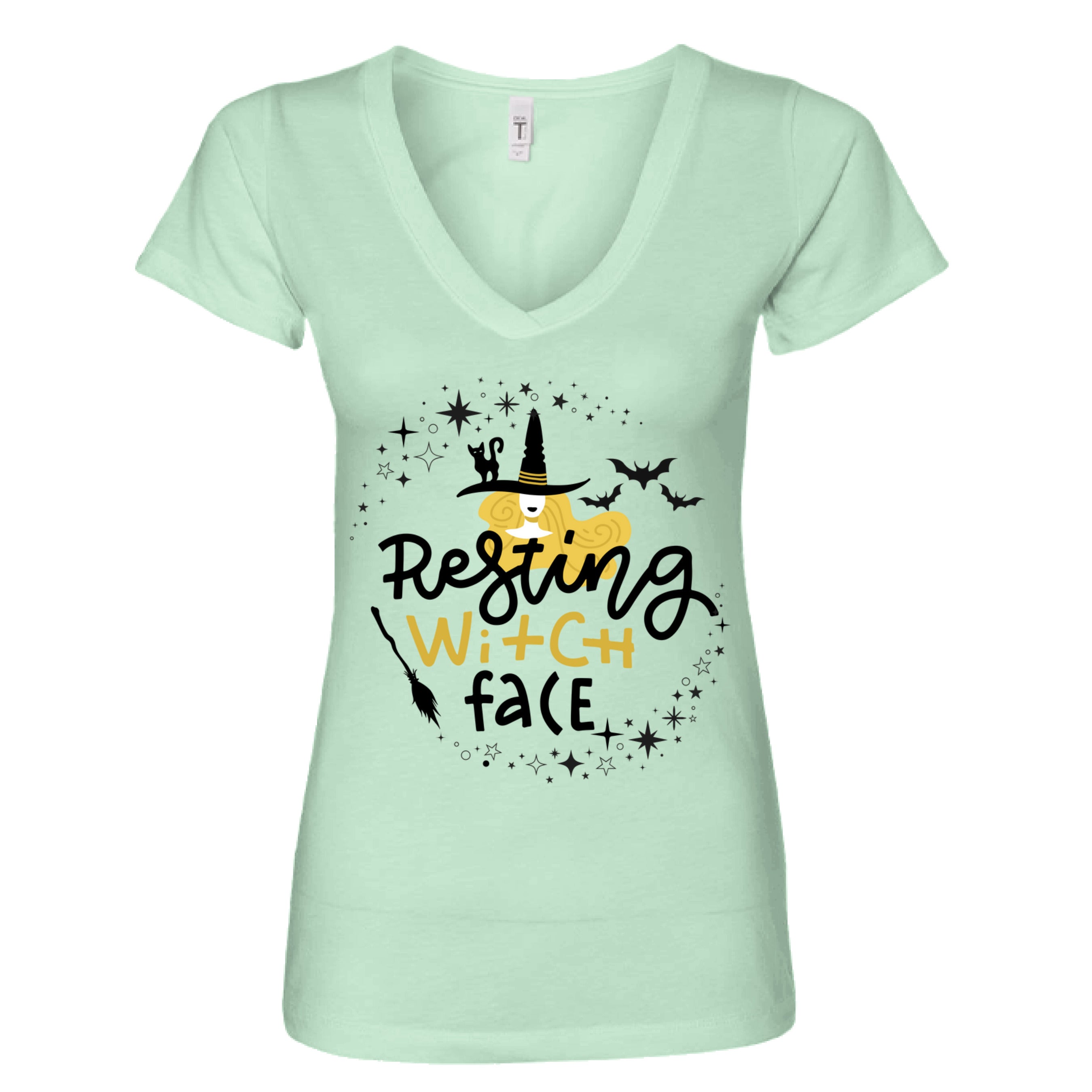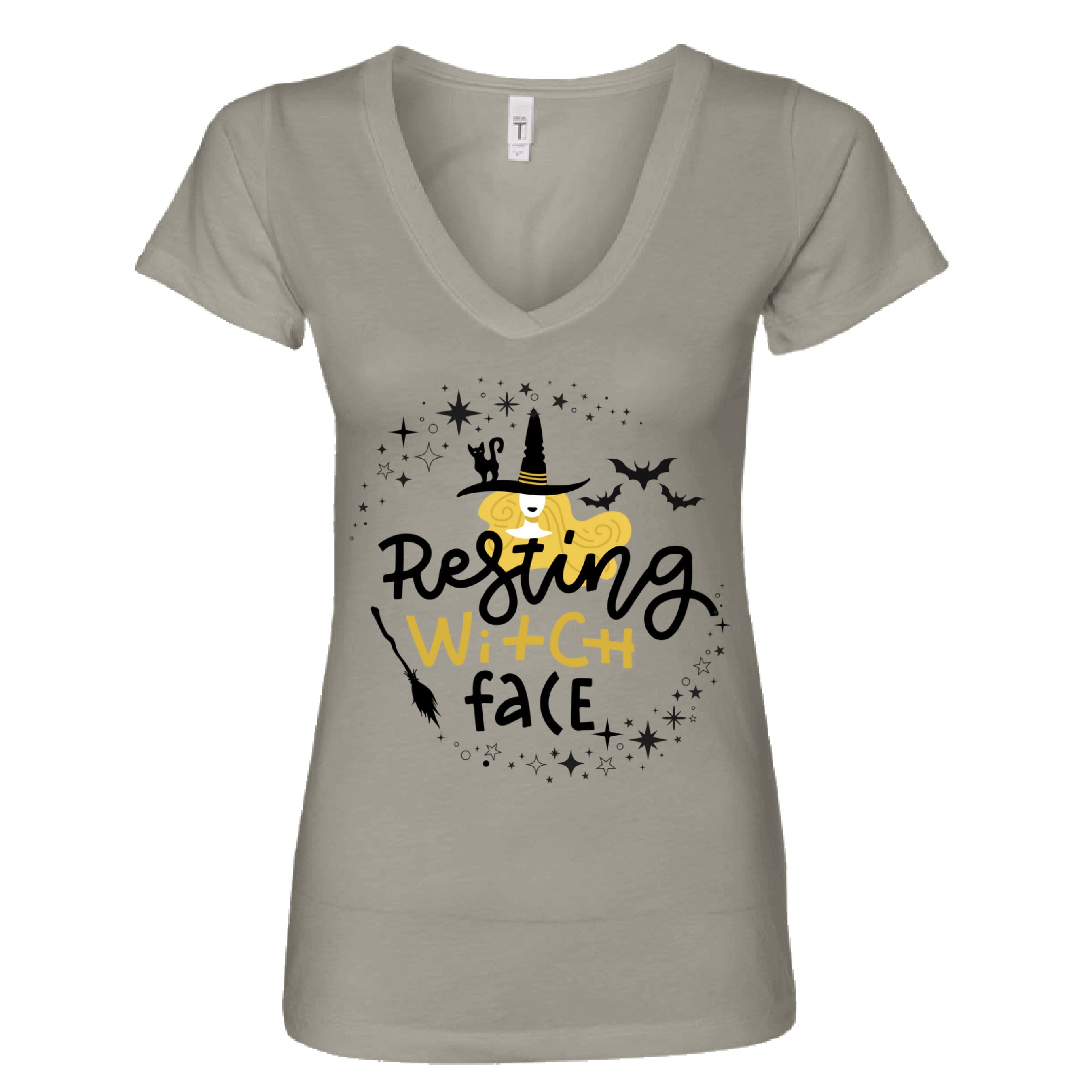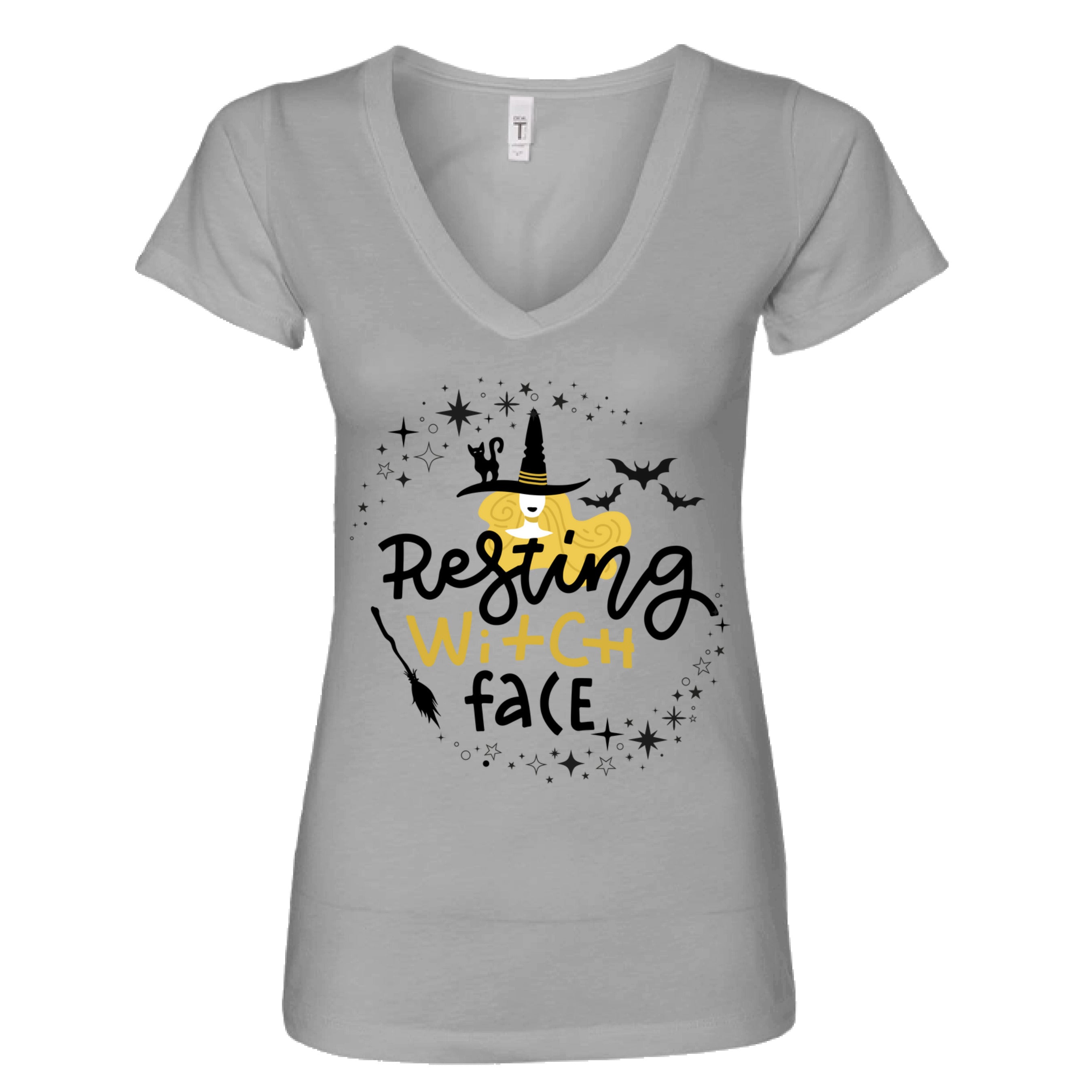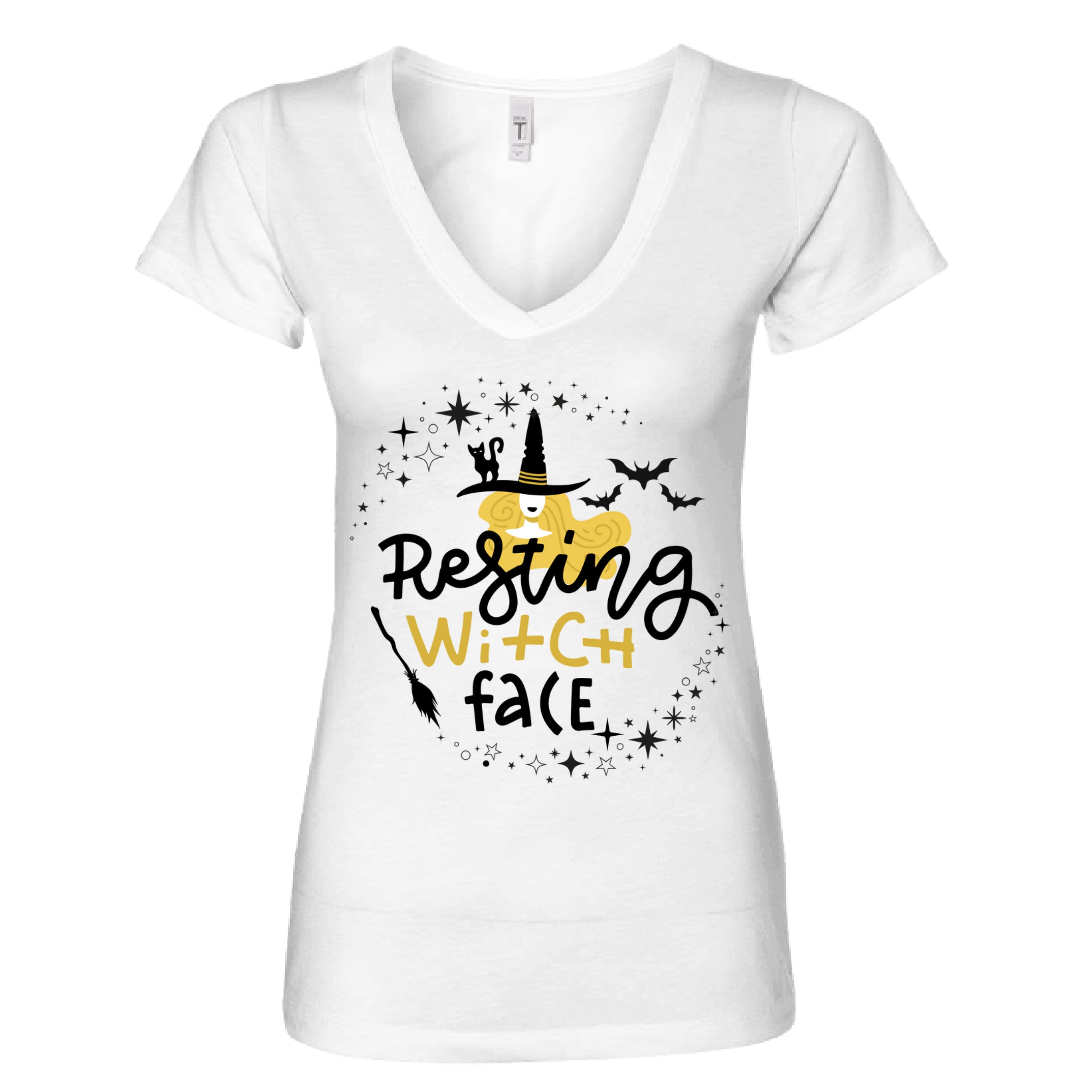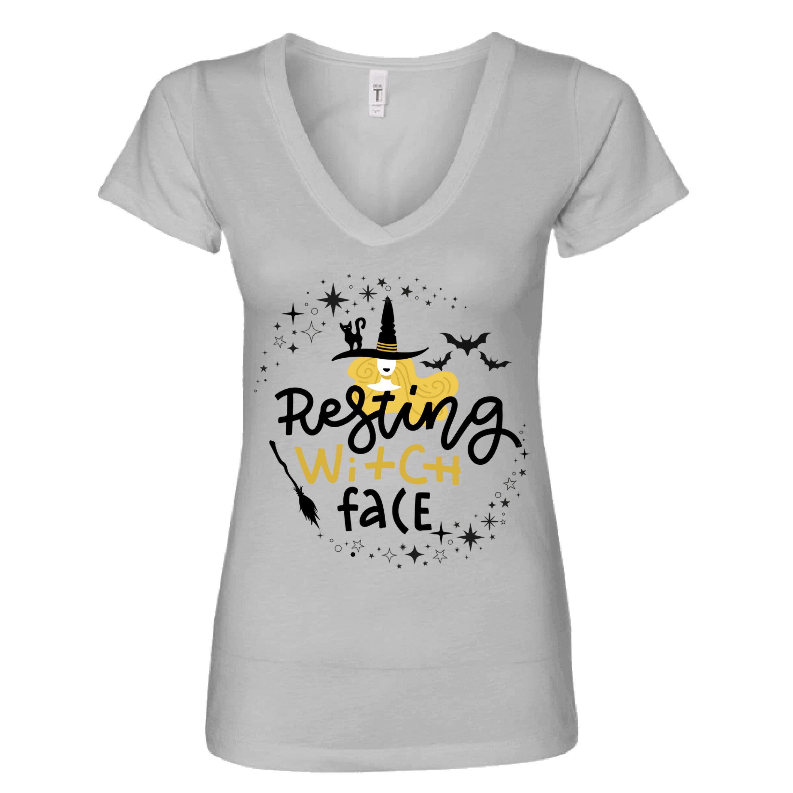 Show off your sassy side with this Resting Witch Face V-neck T-shirt design. Perfect for those who love a touch of spooky attitude, this tee combines comfort with playful charm. Whether you're casting spells or just chilling, it's a fun way to express your witchy vibe with a wink.