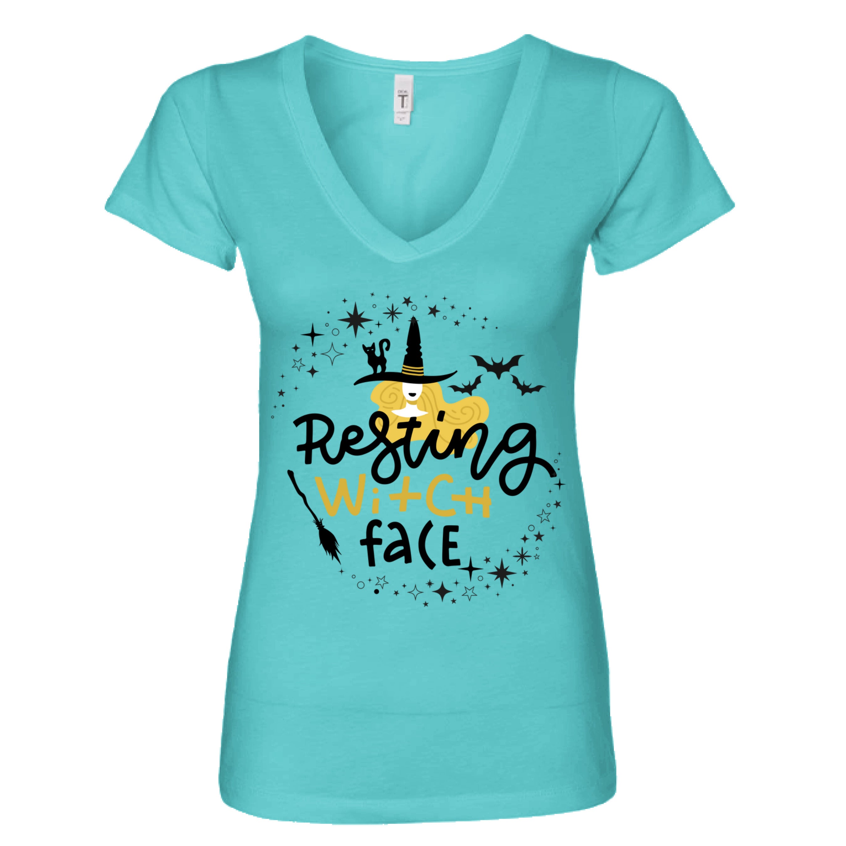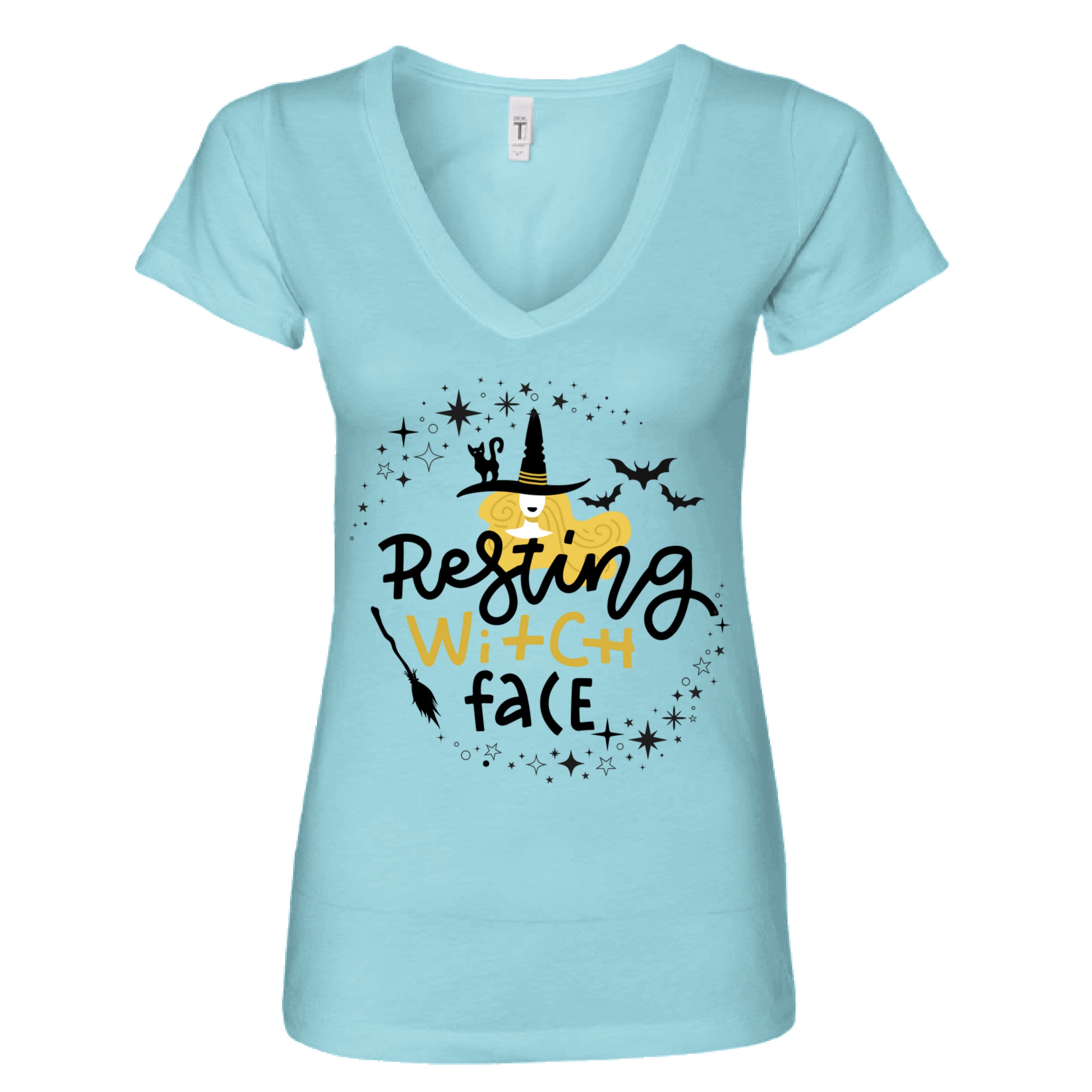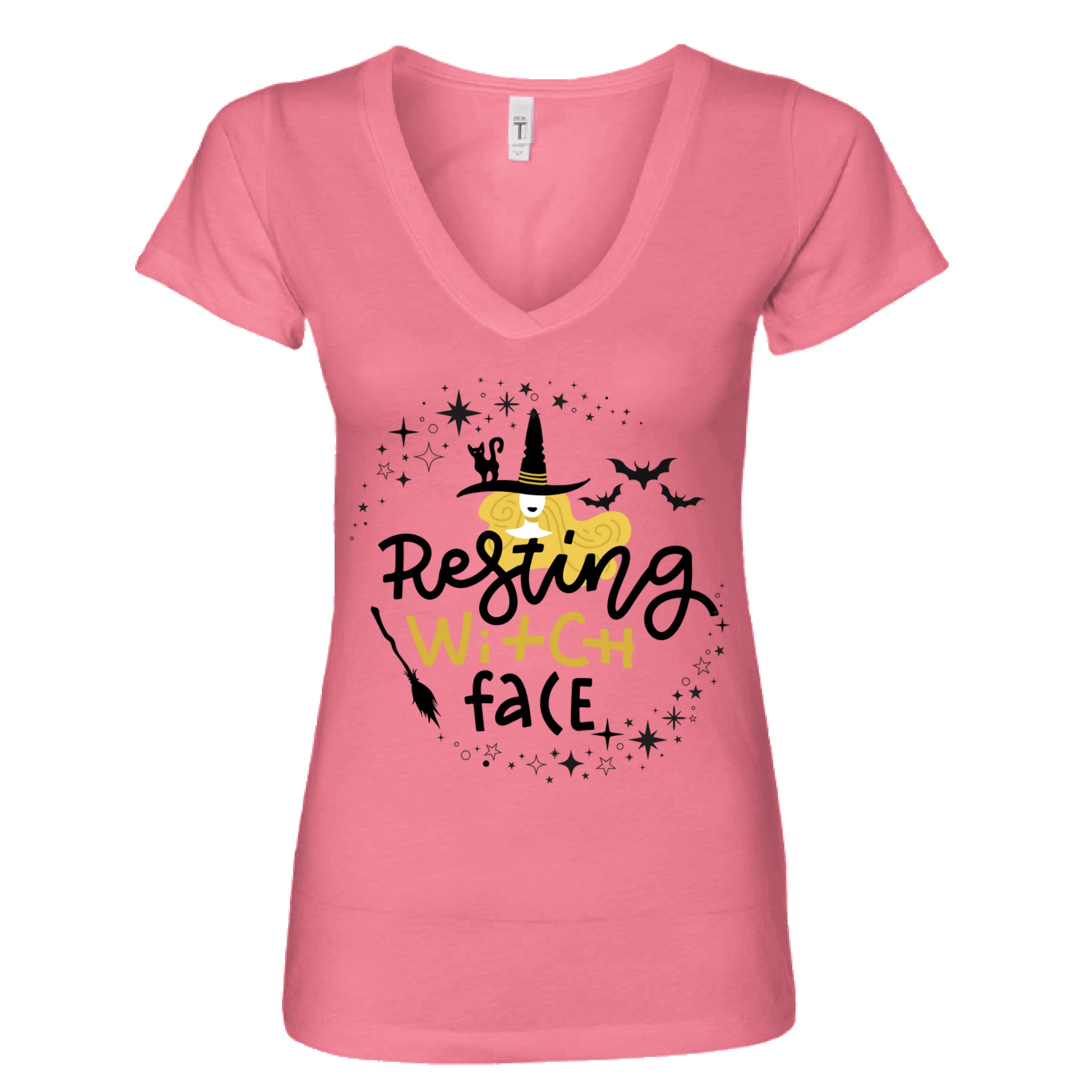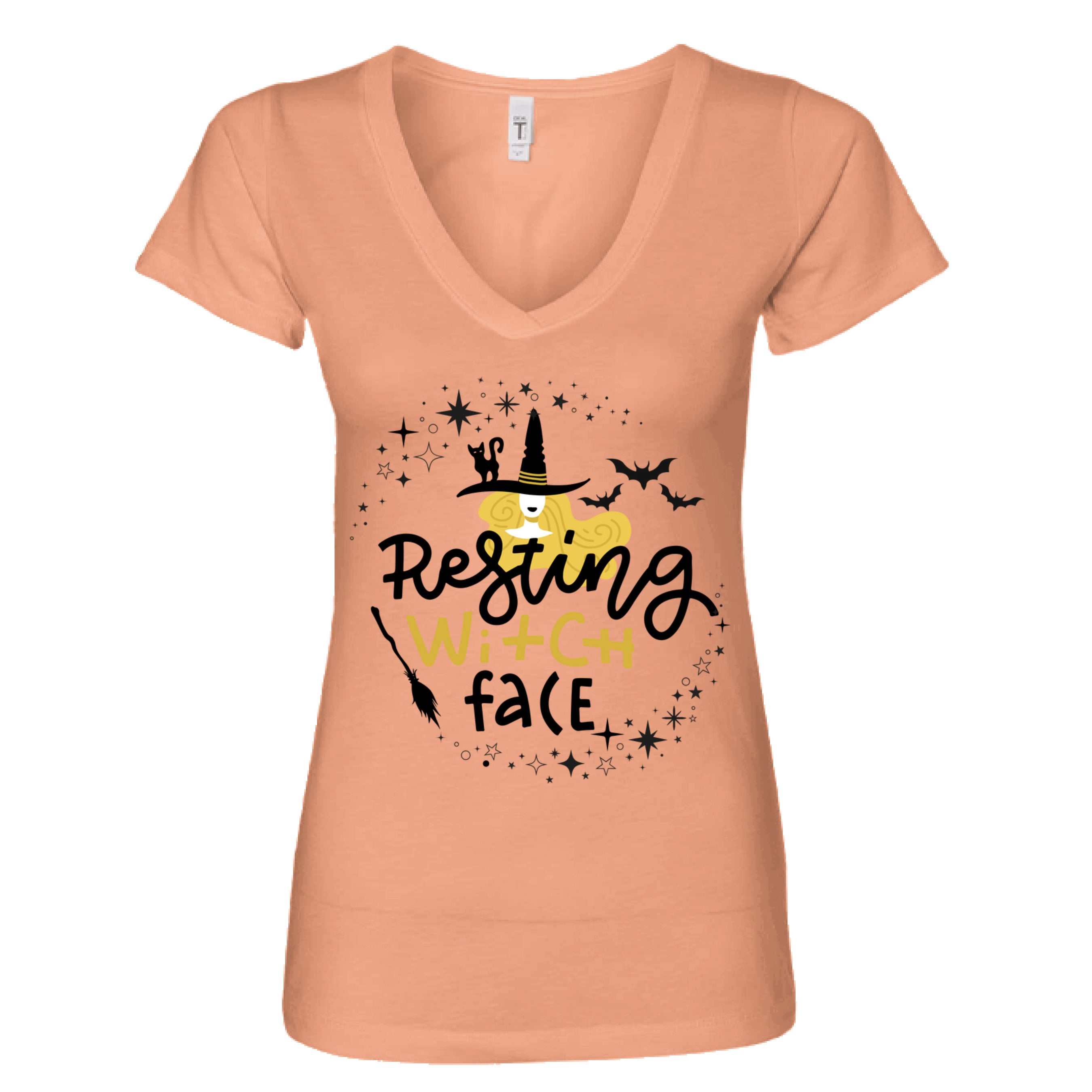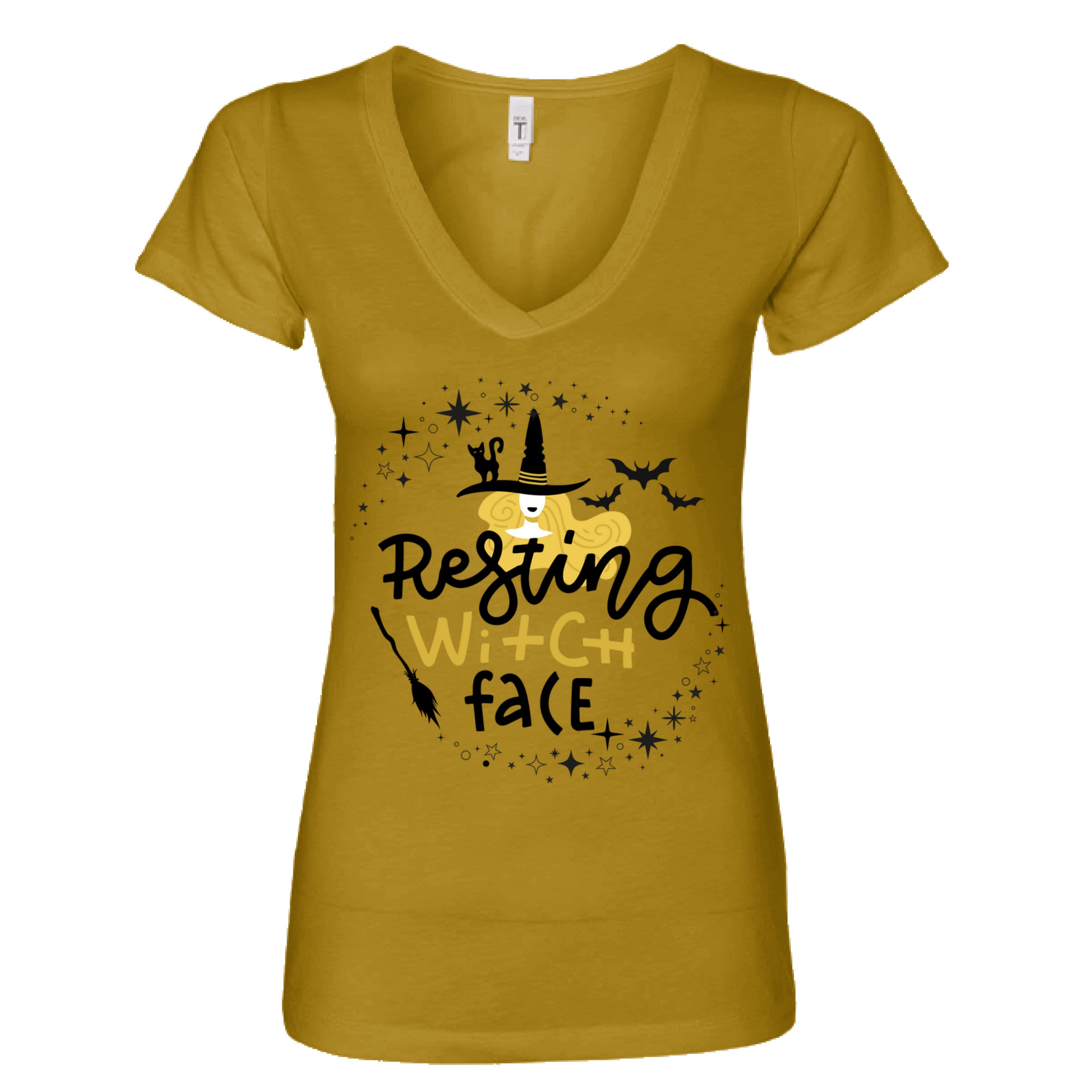 Show off your sassy side with this Resting Witch Face V-neck T-shirt design. Perfect for those who love a touch of spooky attitude, this tee combines comfort with playful charm. Whether you're casting spells or just chilling, it's a fun way to express your witchy vibe with a wink.